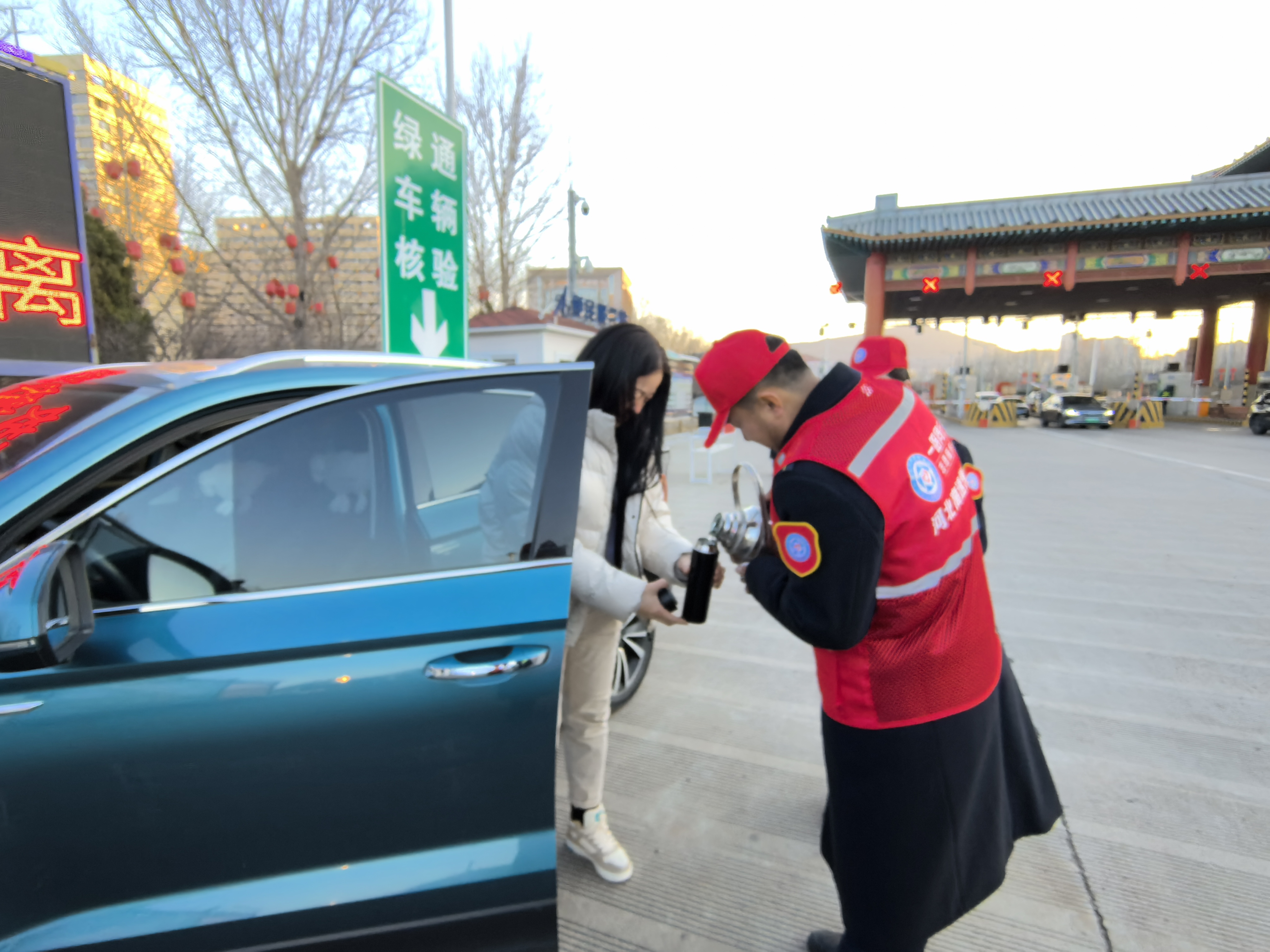承德收费站设立了春运服务保障点、便民服务台,为过往司乘免费提供热水、充电休息、维修工具等暖心服务。一位司机在接过工作人员递来的热水时,感动地说:“没想到大年初一还能在收费站感受到家的温暖,真是太感谢了!”