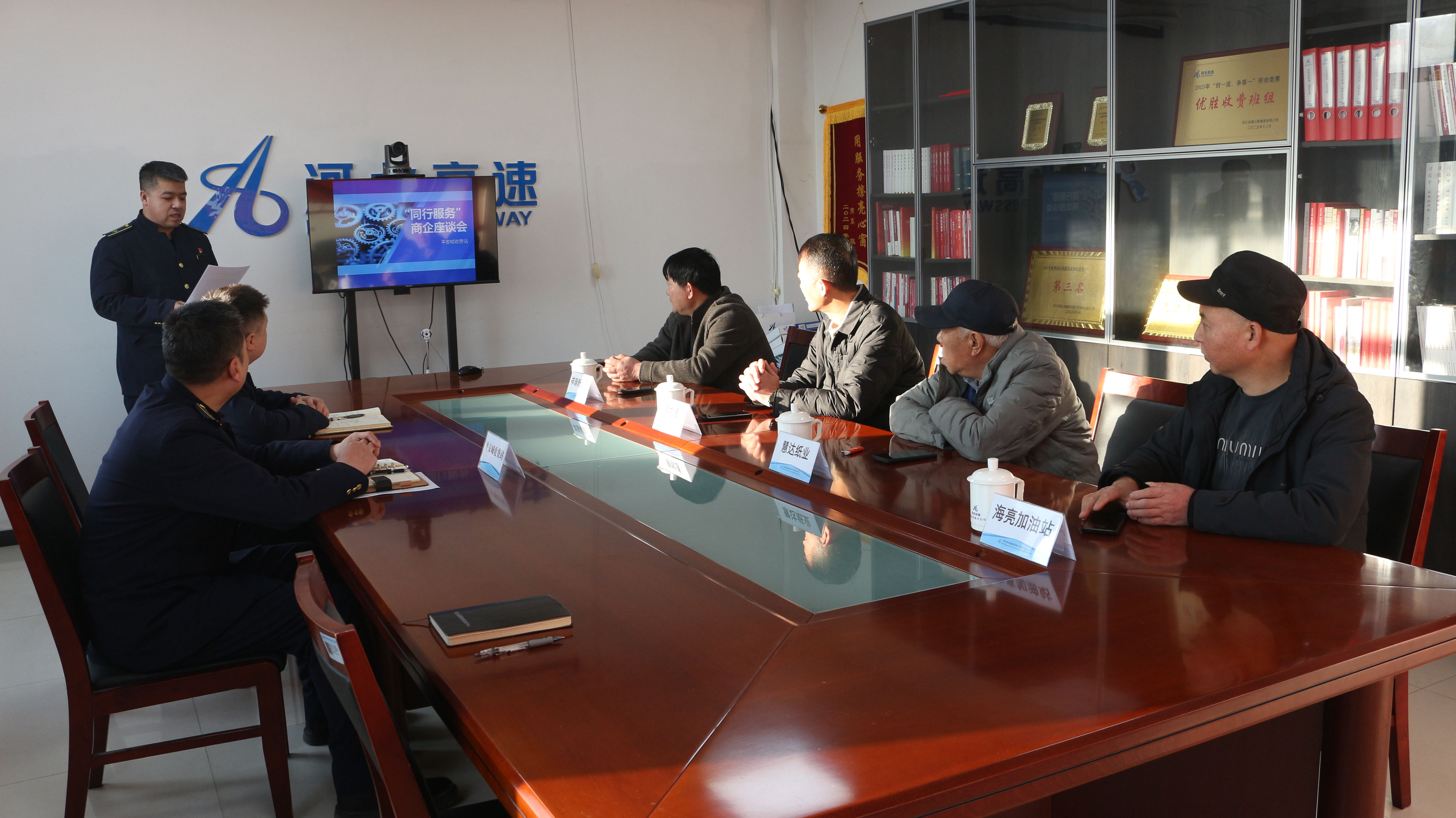 小寒至,冬渐浓,平安城收费站内却是暖意融融。为打通商企沟通“最后一公里”,持续推进“同行服务”走深走实,1月5日上午,平安城收费站精心组织商企座谈会,诚挚邀请慧牧通交易市场、海亮加油站、慧达纸业、祥瑞粉条厂四家重点企业代表走进站区,以“面对面听诉求、实打实解难题、心贴心促发展”的务实姿态,搭建起高效畅通、互信共赢的服务桥梁。