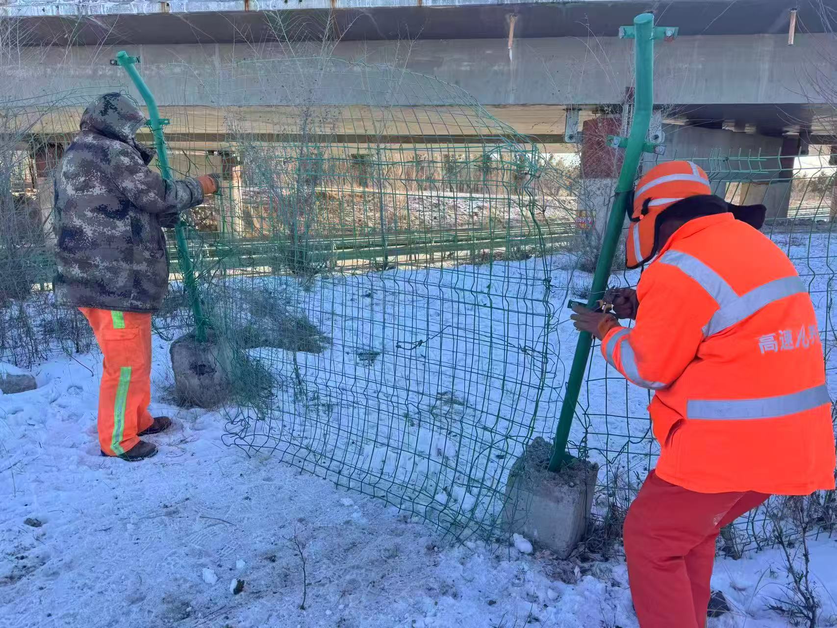 年终岁末,高速的车流量不断增加。最近一段时间沽源养护队成员总奔赴在维修交安设施的任务中,零下二十多度的气温,依然坚守在工作岗位上,确保能够及时完成任务。2月9日的主要任务是对路边损坏的隔离栅和护栏板进行修复加固。维护好交安设施,保证高速公路畅通,确保群众出行安全是最重要的。