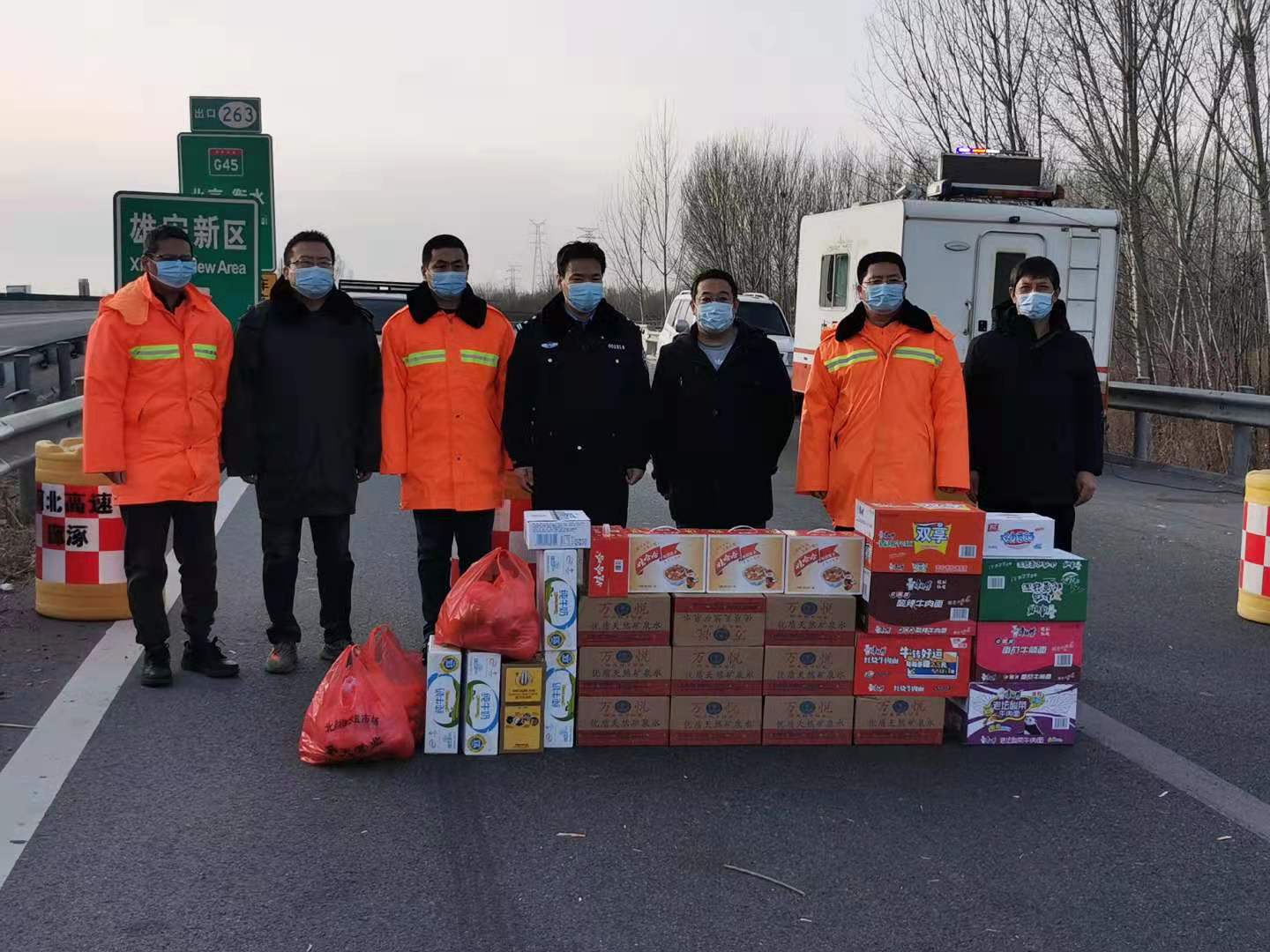 总经理左劼一行首先来到廊涿高速大广互通交通管制现场。1月8日,廊涿养护工区按照高速交警固安大队和分公司要求,对廊涿高速涿州方向大广互通出口匝道实行交通管制,外业人员迅速出动第一时间到达现场完成了互通匝道封堵,并安排养护人员24小时在现场昼夜值守,在强化各项防控工作的同时积极配合高速交警落实具体防控措施,确保防疫安全和行车安全。左劼一行重点查看了现场道路保畅情况,并慰问了现场24小时值守的一线养护人员,详细了解昼夜值班值守情况,叮嘱职工们要时刻注意自身安全,全力配合高速交警做好道路保畅工作。