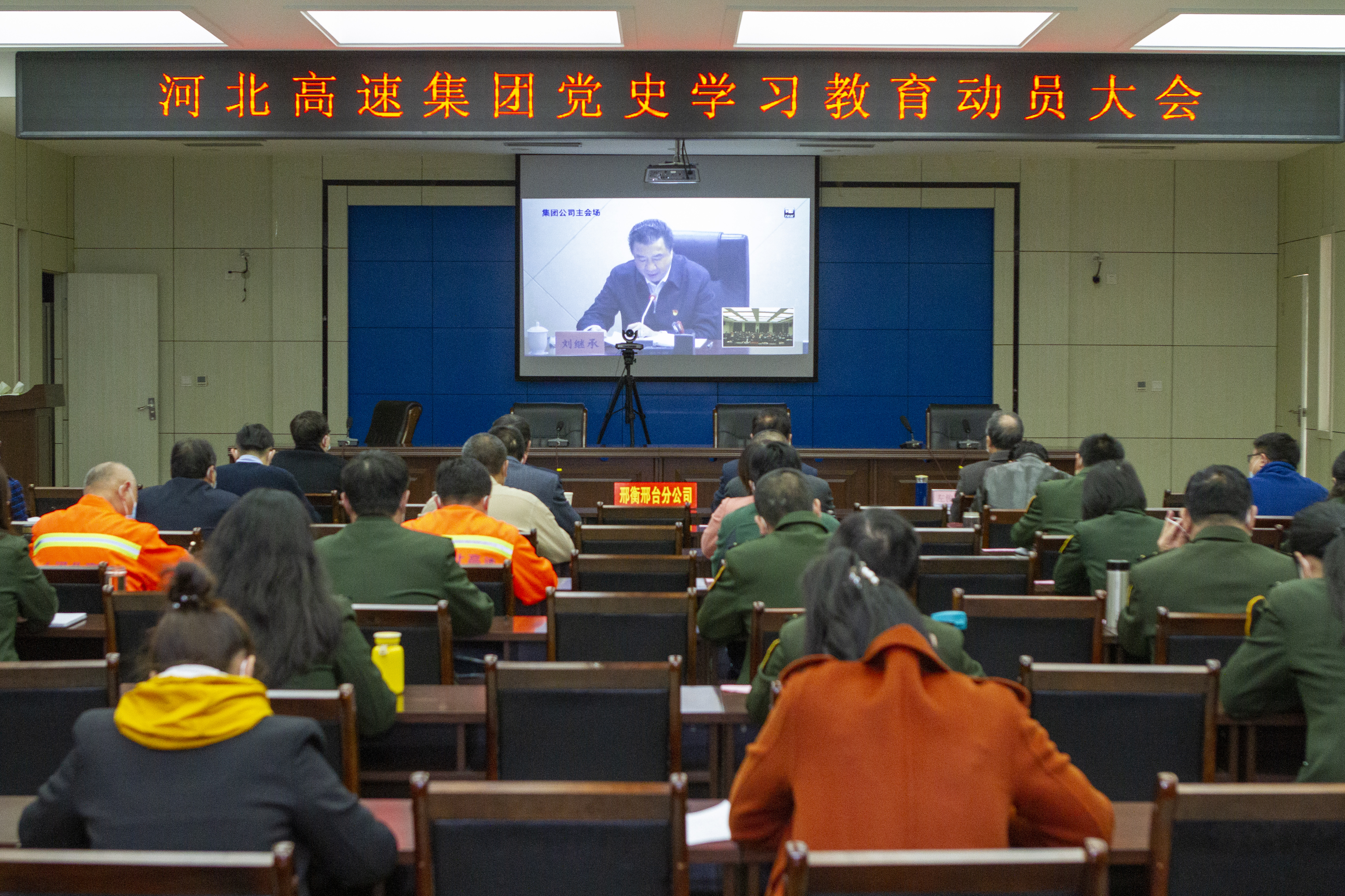 3月10日,邢衡邢台分公司在邢衡邢台分会场组织收听收看河北高速集团党史学习教育动员大会。邢衡邢台分公司领导班子全体,各部室、各单位负责人及各站(区)党员代表,共计50余人参加会议。