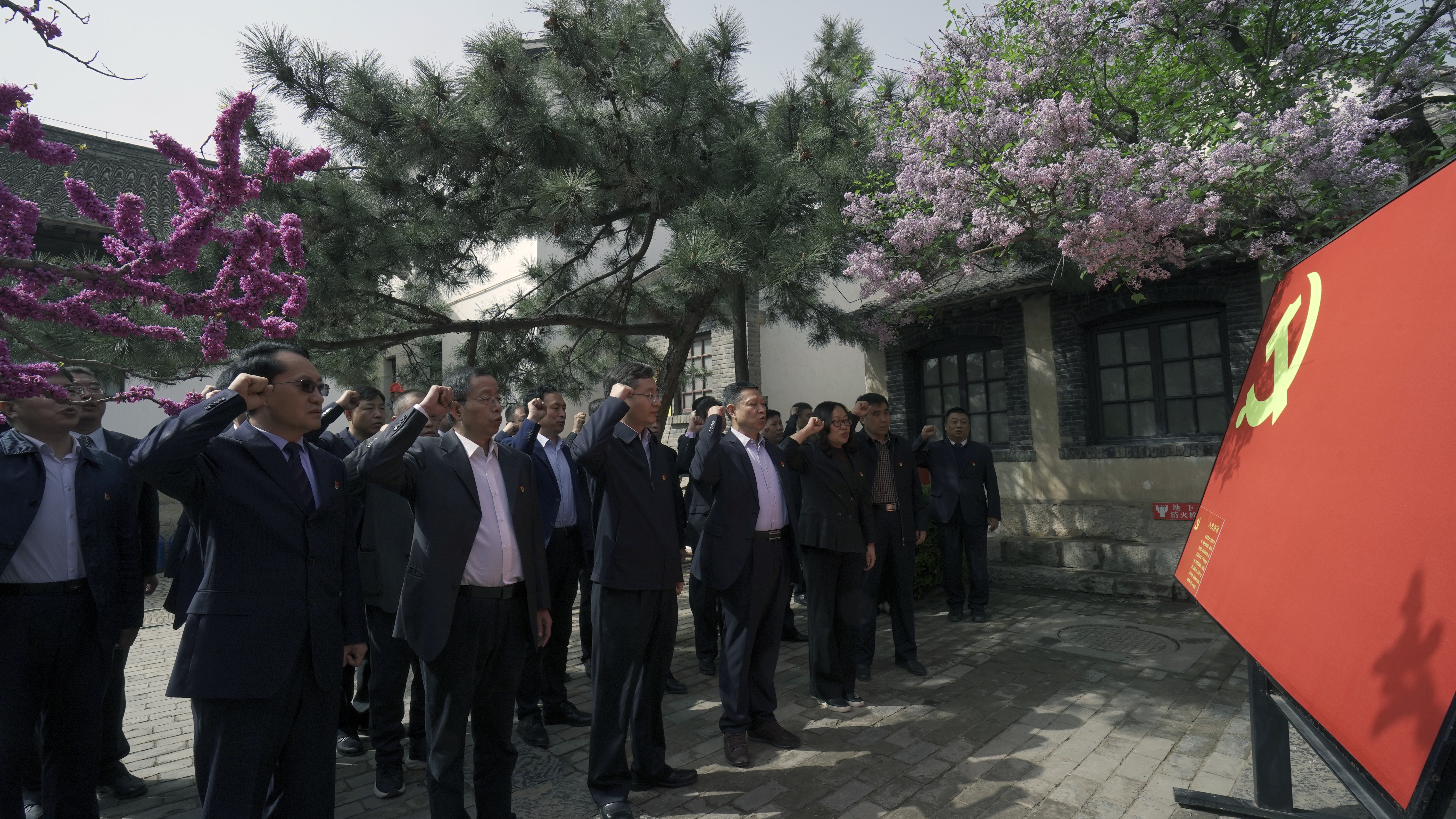在涉县129师司令部旧址,党委书记姜涛带领全体党员干部面向刘伯承、邓小平等老一辈革命先烈塑像肃立,怀着无限敬仰心情,敬献花篮、鞠躬敬礼,深切缅怀革命先辈的丰功伟绩,并在刘伯承、邓小平亲手栽种的丁香花和紫荆树前,面对鲜艳的中国共产党党旗,庄严宣誓,重温入党誓词,接受党性教育和灵魂洗礼,铿锵有力的宣誓声久久回荡,所有人都深受感染、倍受教育。期间,大家先后参观了司令部旧址、129师陈列馆等地,并聆听129师文史研究员上的党课。一件件文物、一幅幅图片、一叠叠文件承载着革命先烈英勇奋战的光辉历史,大家身临其境地感受129师为中华民族抗日战争胜利作出的突出贡献,充分体会老一辈革命家坚定的共产主义信仰和义无反顾的奉献精神。姜涛强调,广大党员干部要经常地、自觉地接受红色传统教育,坚定理想信念,永葆政治本色,为分公司实现高质量发展提供强大精神动力和思想保证。
