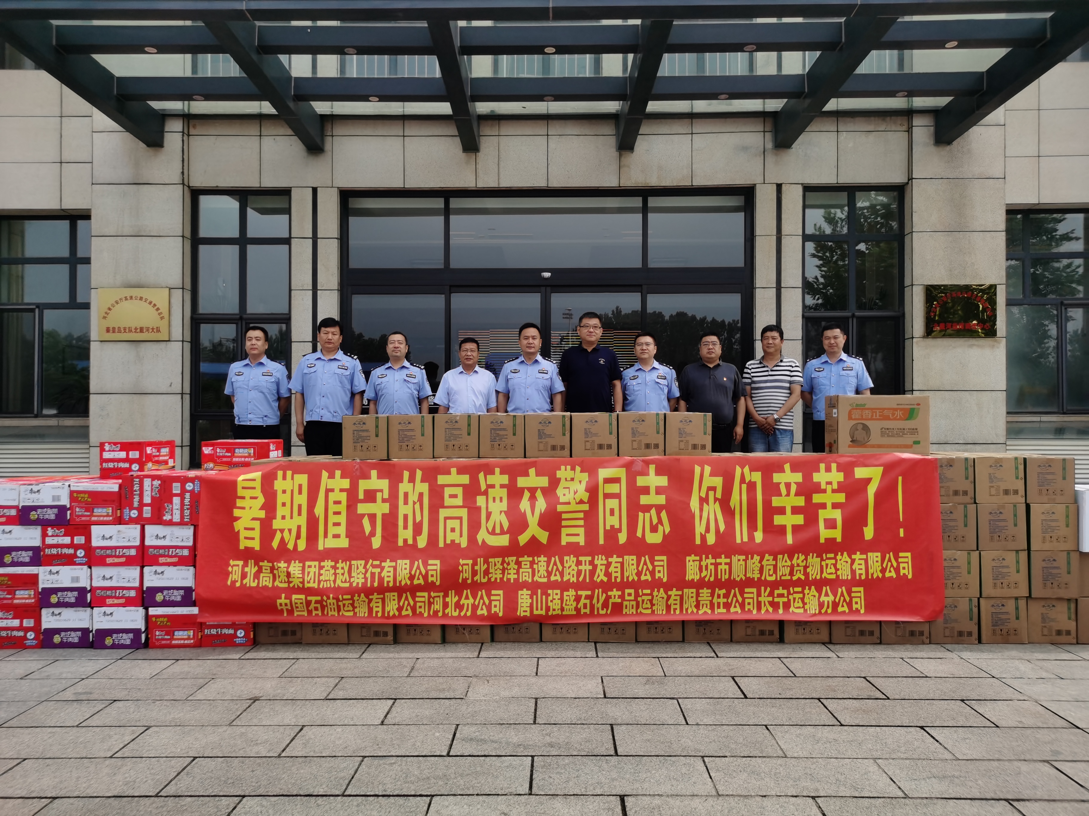为做好旅游高峰期高速公路保畅工作,加强与河北高速交警和兄弟单位之间的沟通与协作,同时感谢各方对燕赵驿行公司安全工作长期以来的支持与配合。燕赵驿行公司党委副书记、副董事长、总经理任清耀,带领公司安全部门负责人、驿泽开发公司经理组成慰问组,前往香河、唐山、北戴河、秦皇岛等地向旅游高峰期值守在一线的交警同志表示慰问。