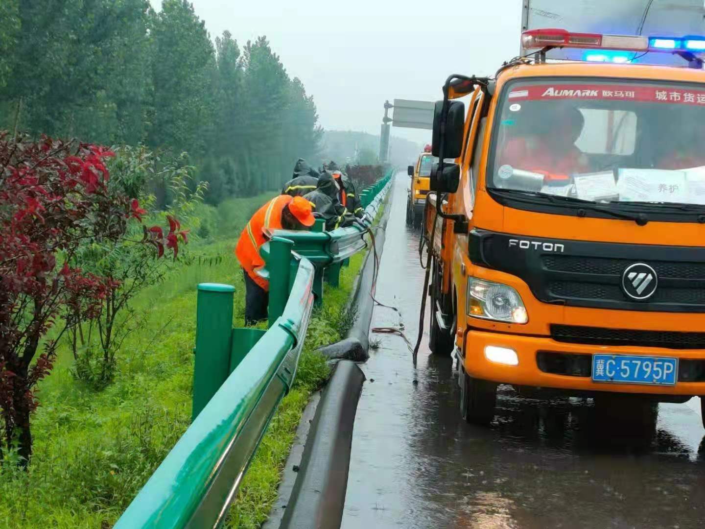 迅速反应,冒雨抢险维修。迁安养护工区做好6月25日防汛演练成果转化,第一时间启动防汛保畅应急预案,迅速成立抢险突击队,展开护栏抢修工作。抢险突出队克服暴雨困难,迅速设置临时安全标志,在联合公安交警等部门做好现场交通维护的基础上,加班加点进行维修、更换护栏配件,此次维修共出动车辆4台班、人工13人,高效完成北京方向K213处损毁护栏维修工作。