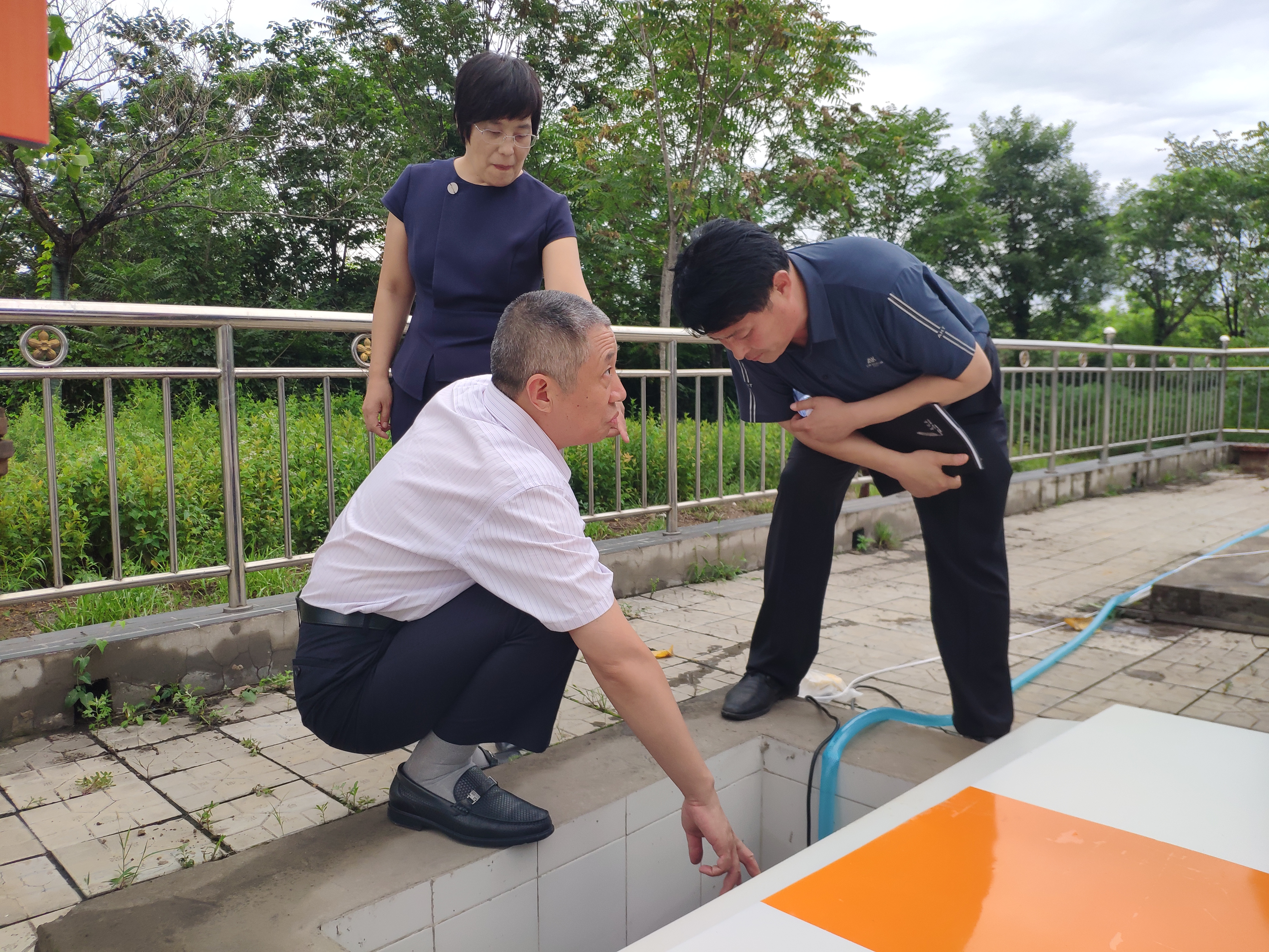 服务区加油站站长第一时间上报值班领导,分公司总监、驻区副总监迅速赶往现场,立即启动防汛应急预案。公司副总经理徐全星靠前指挥,争分夺秒,集结一切力量,第一时间带领能源分公司专家、安全环保部及能源分公司负责人前往服务区指导工作。他们详细了解了加油站卸油口、人孔井等关键位置的渗水漏水以及汛期突发事件的应急预案启动实施等情况。
