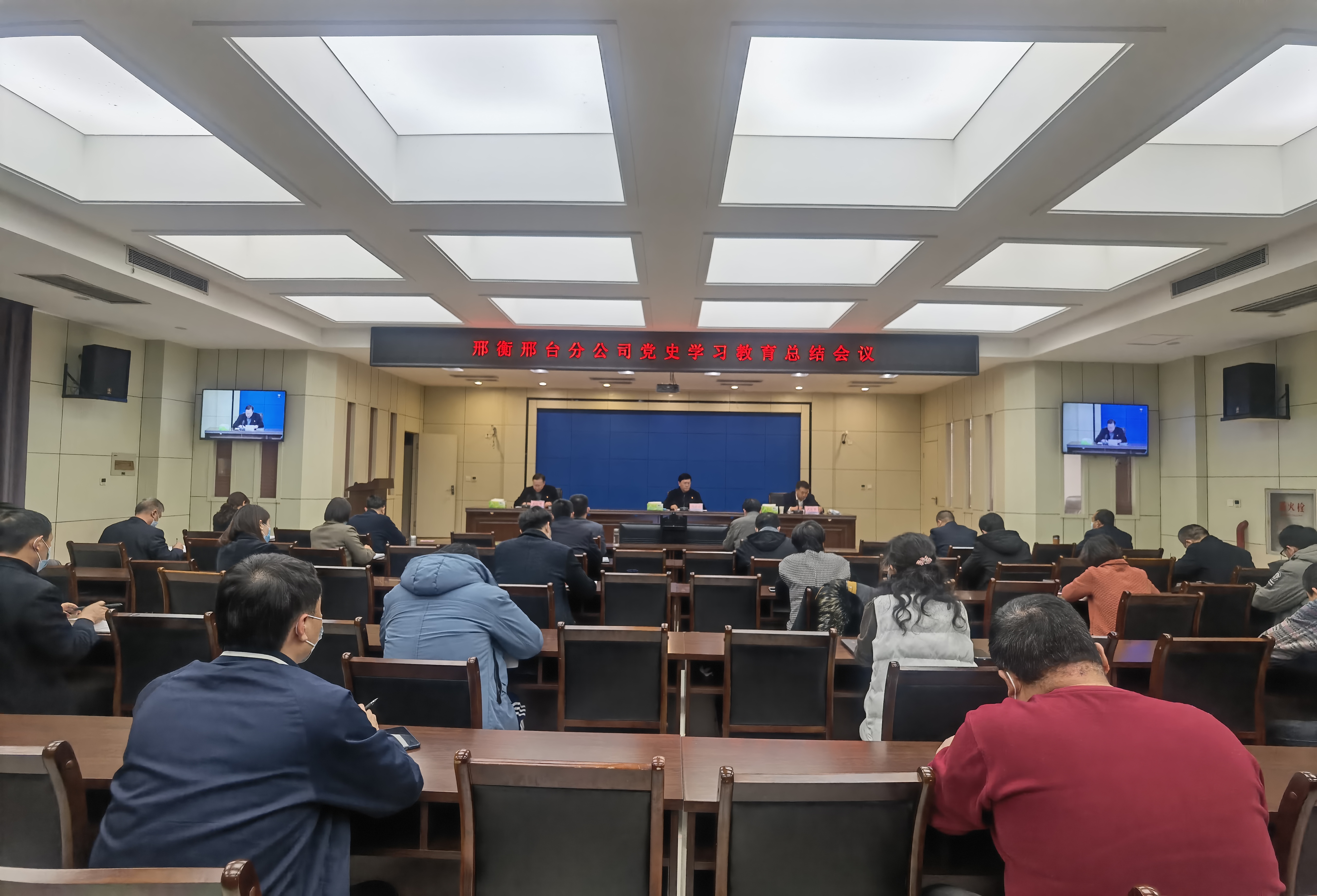 邢衡邢台分公司党史学习教育总结会1月12日下午召开。传达学习中央党史学习教育总结会议、省党史学习教育总结会议和集团公司党史学习教育总结会议精神,对分公司党史学习教育进行总结。分公司党委委员、副总经理赵红星主持会议,党委书记、总经理马进会出席并讲话。