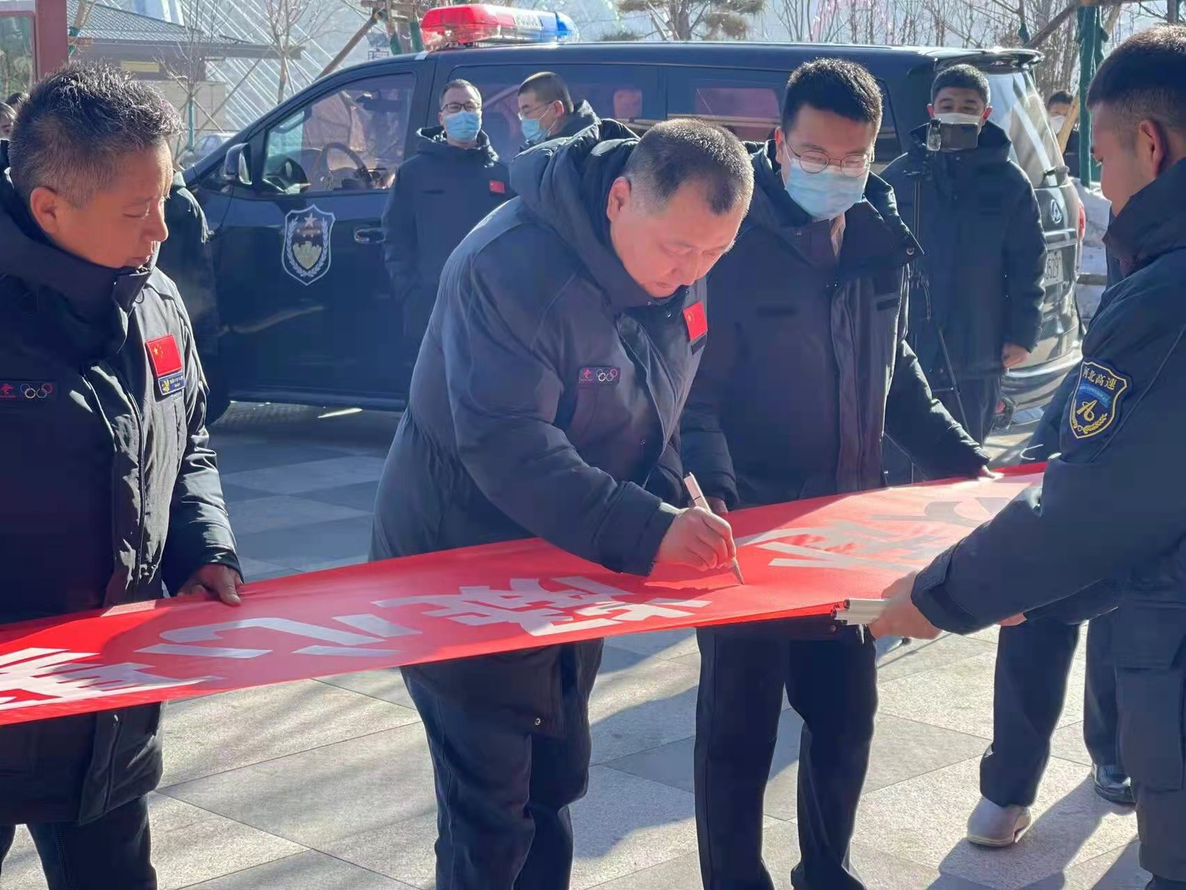 据悉,张家口地方公安部门、卫健委、金汇通航冬奥会直升机保障团队以及张家口分公司相关负责人、涉奥服务区干部职工等,共计100余人参加活动。