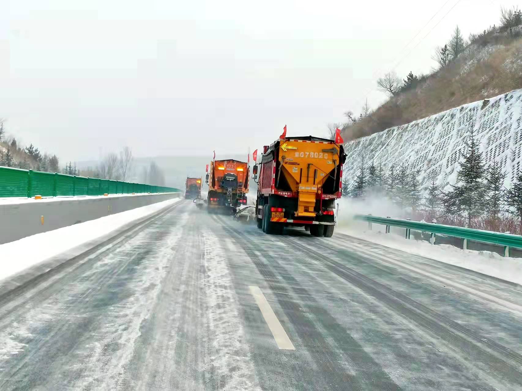 路段各个点位除雪梯队按照除雪应急方案各就各位,坚持“雪不净、兵不收”;各收费站主要负责人带头,全体职工全副武装,摩拳擦掌,积极投入到除雪工作中。
