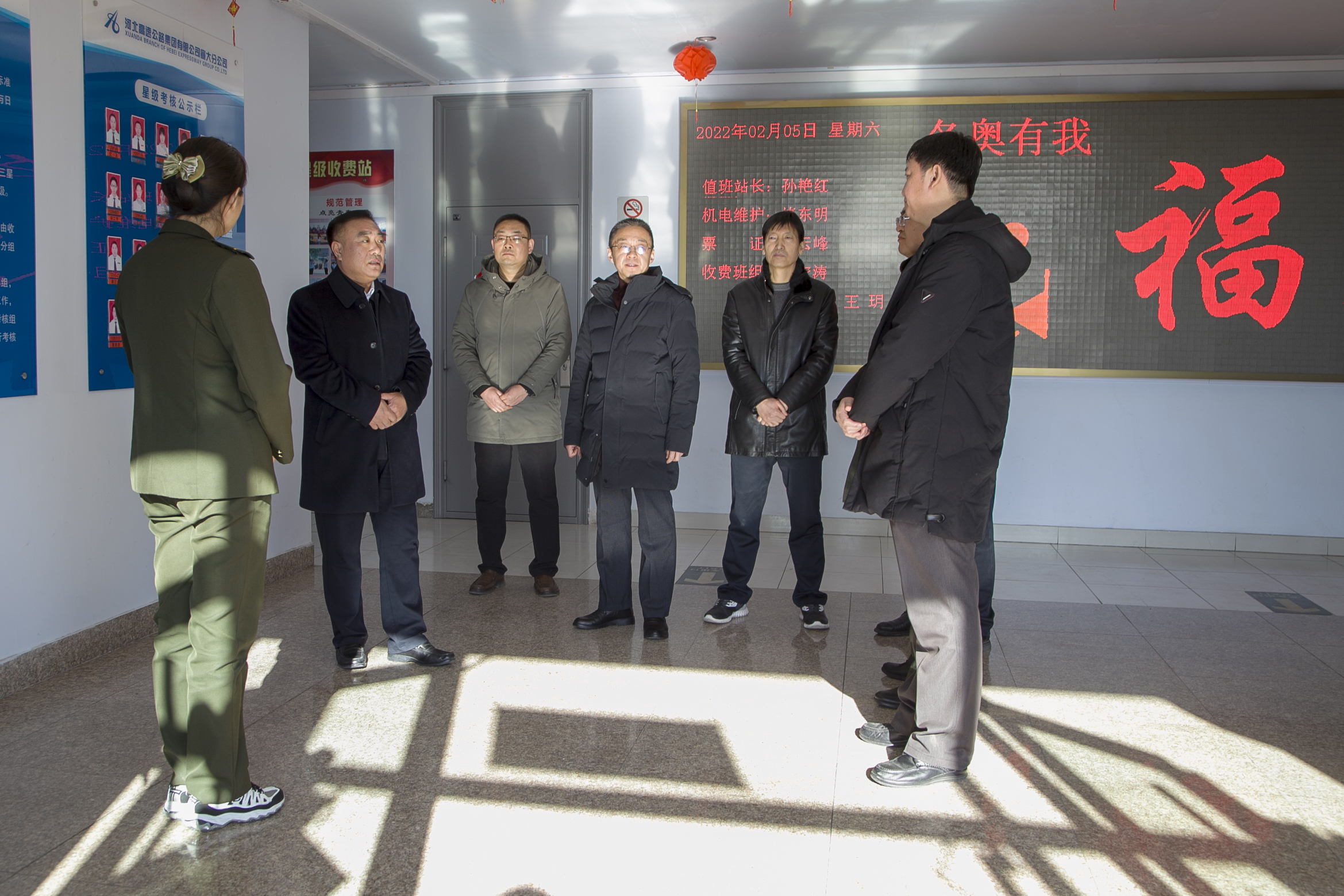 二月的张垣大地春寒料峭、乍暖还寒。2月5日,集团公司党委副书记、副董事长、总经理杨荣博在集团公司行政办公室副主任杜国庆的陪同下,走进宣大分公司化稍营收费站同刚刚完成冬奥火炬传递安全服务保障任务和春节期间坚守岗位的一线员工亲切交流,并送上了节日的慰问和祝福。