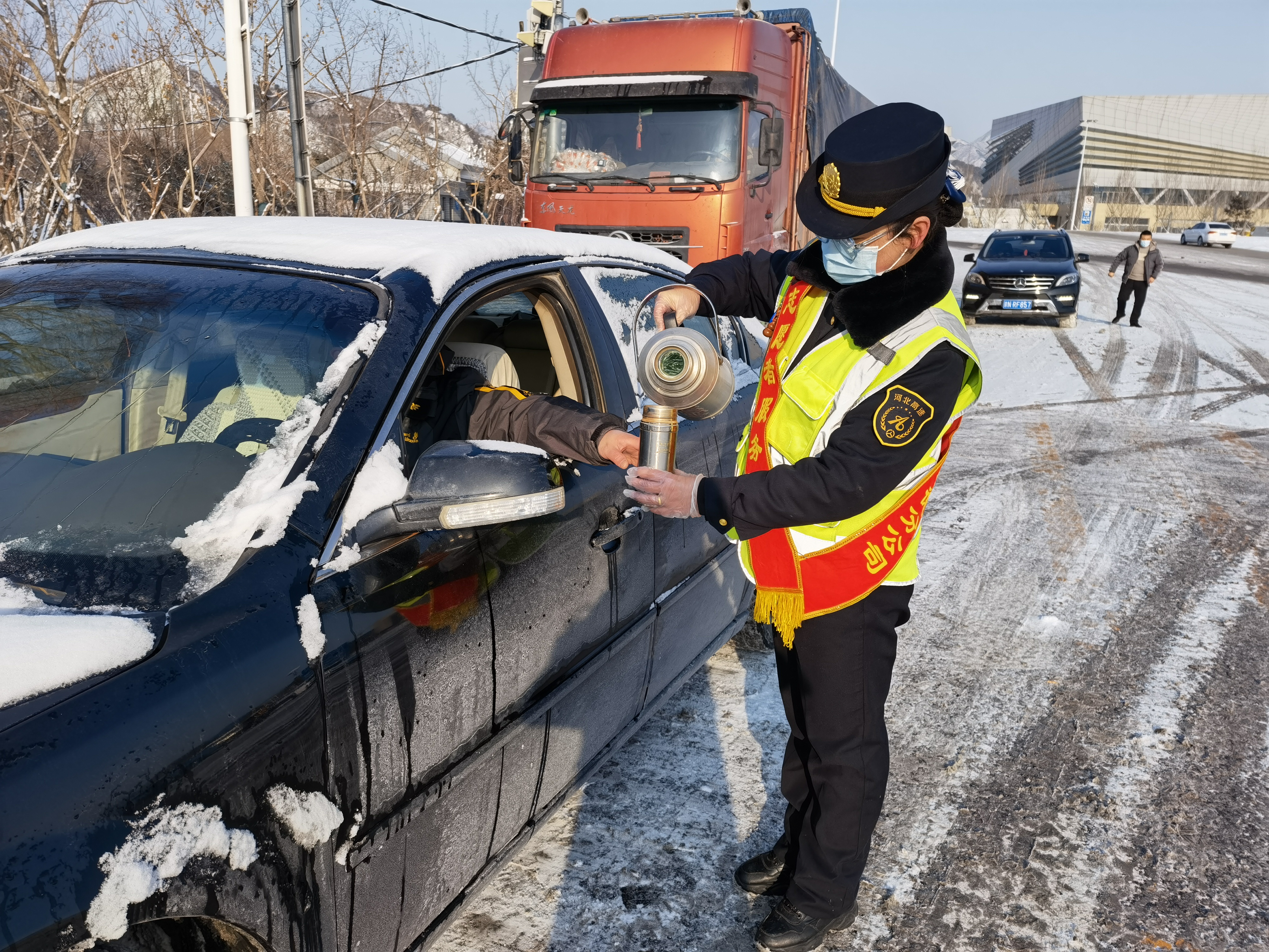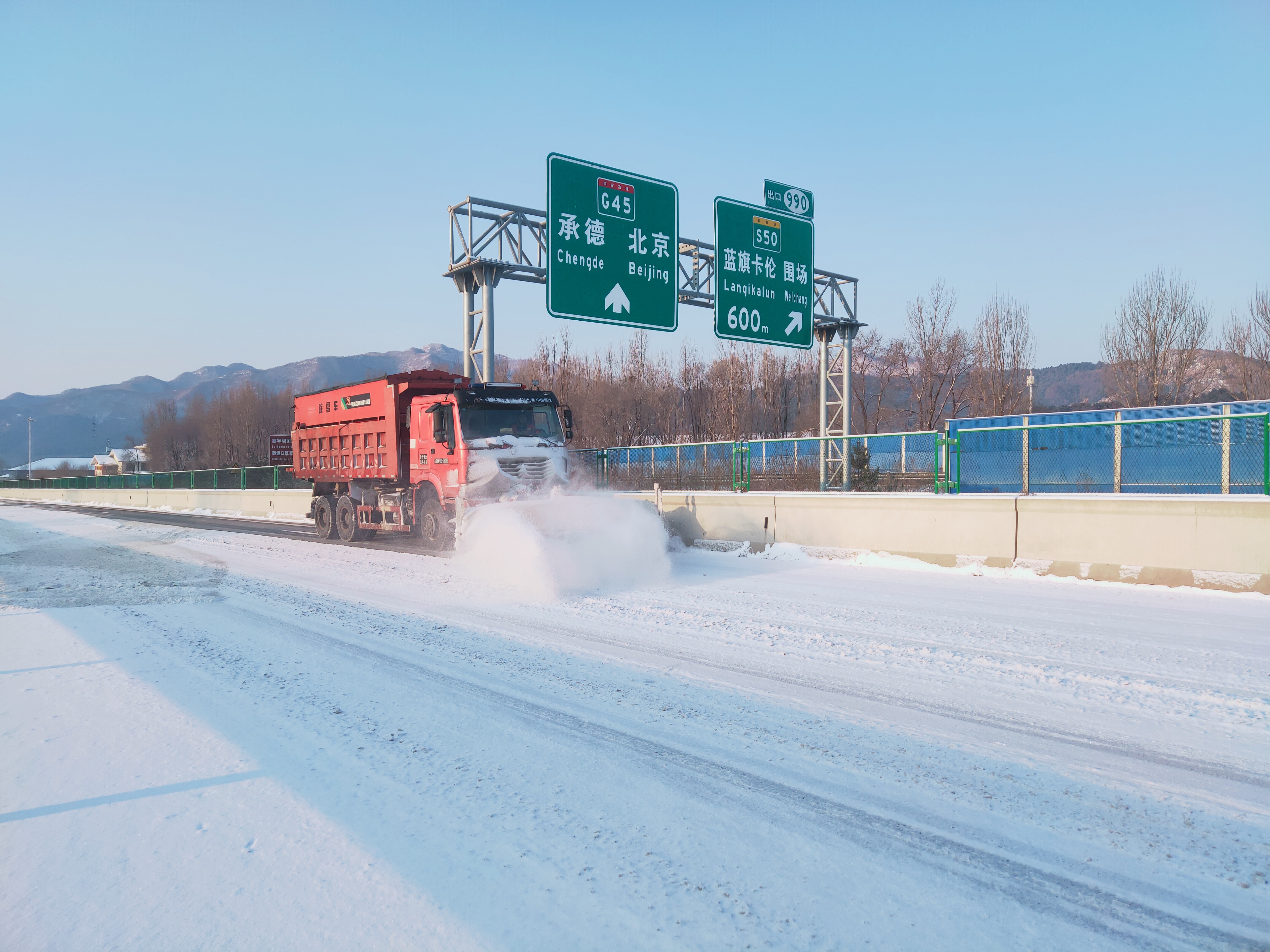 雪情就是命令,保通就是责任。承德分公司闻令而动、科学部署,立即启动恶劣天气应急预案,第一时间组织人员上路开展除雪保畅工作,最大程度降低降雪对高速公路交通带来的不利影响,确保所属各路段安全畅通。各养护班组24小时连续奋战,重点针对桥梁、互通、长大纵坡等部位,增派巡查车加强路面巡控,并采取“机械为主,人工辅助”的方式,迅速撒布融雪剂,及时清扫、铲除积雪;充分发挥“路警一体化”职能,与高速交警、路政等部门联勤联动,通过电话、微信、联动工作群以及沿线可变情报板加强路段之间的信息共享,采用抖音号、微信公众号、广播等多渠道及时上报和发布路况雪情,确保应急突发事件快接快处,始终保障道路处在安全运行状态。此外,所属收费站迅速组织职工对收费车道、广场积雪进行清理,并利用“便民服务台”“党员先锋岗”等,为过往司乘人员提供免费热水、简易修车工具、道路指引等延伸服务。