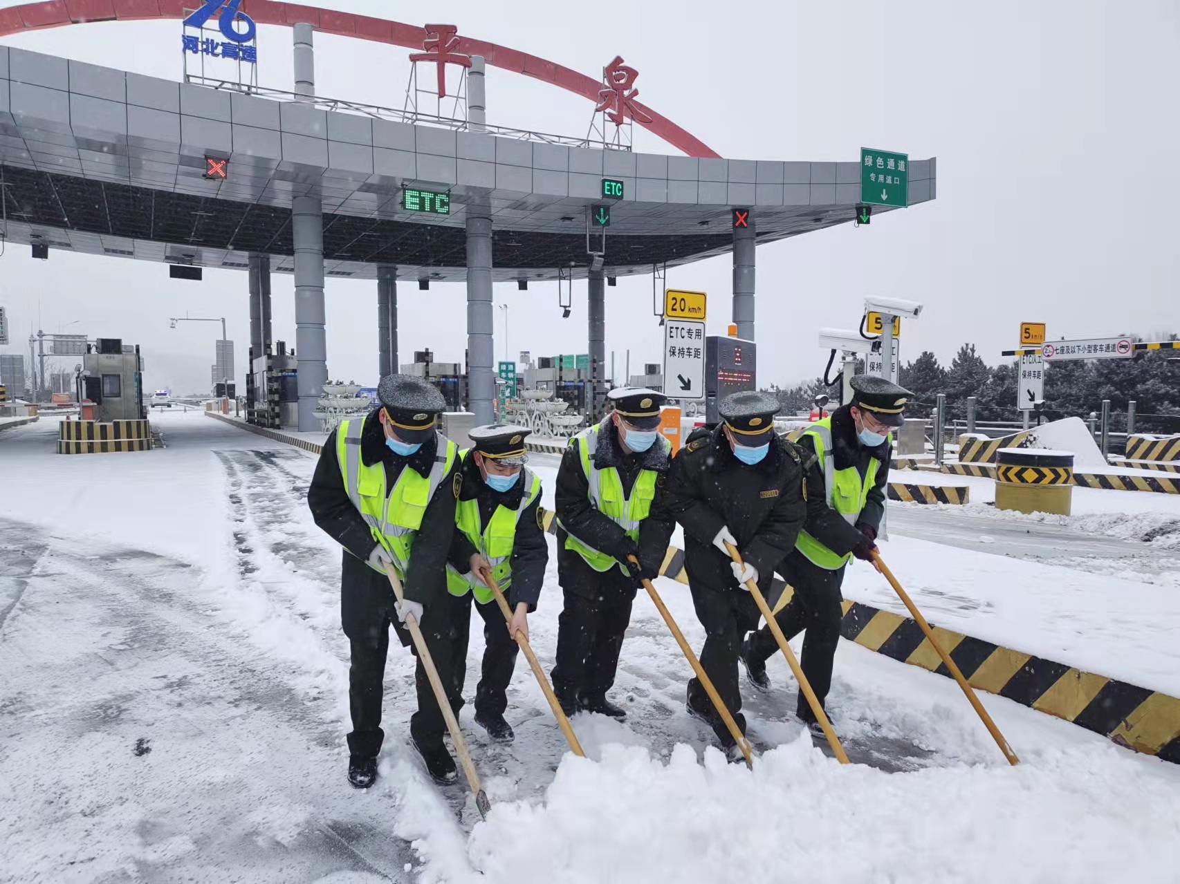 承德分公司所属各收费站、养护班组、隧道管理站干部职工始终坚守岗位,常态化开展除雪保畅、应急巡查和疫情防控工作,所属各路段未因雨雪天气造成车辆滞留现象,最大程度保障了冬奥、春运期间高速公路安全畅通,彰显了承德高速人的责任与担当。