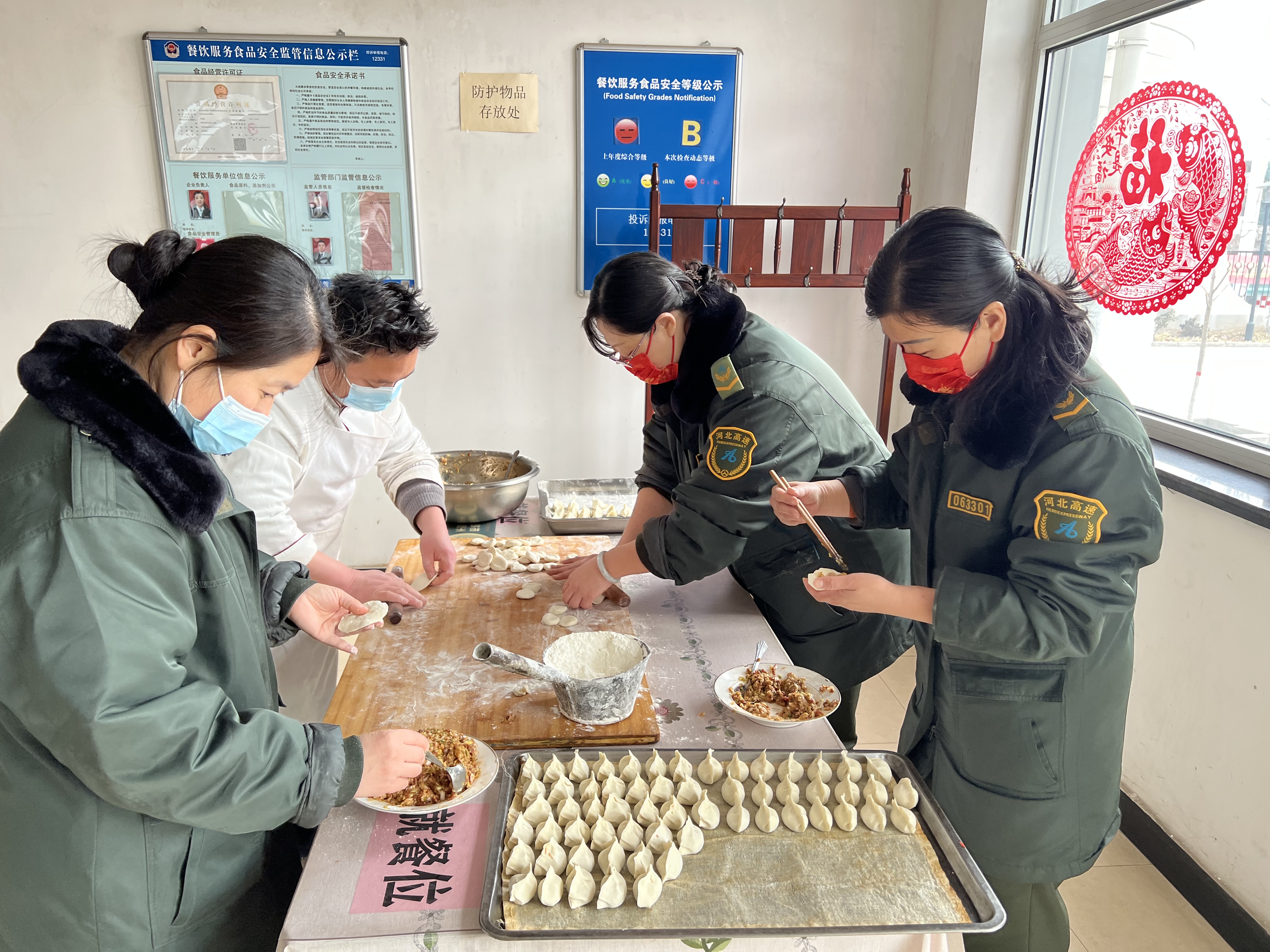 瞧!一大早,邯郸南站的厨师们就忙活起来,洗菜、剁肉、和面……包饺子的准备工作有条不紊的进行着。临近中午时,站领导带领部分二线人员纷纷参与进来,各显才艺,用心包着各式各样的饺子,不一会儿,一排排饺子整齐排布,有白玉元宝饺、翡翠月牙饺、红皮麦穗饺,鲜香营养、色彩艳丽。“这是‘家’的味道”,从收费岗过来吃饭的职工边吃边说着。