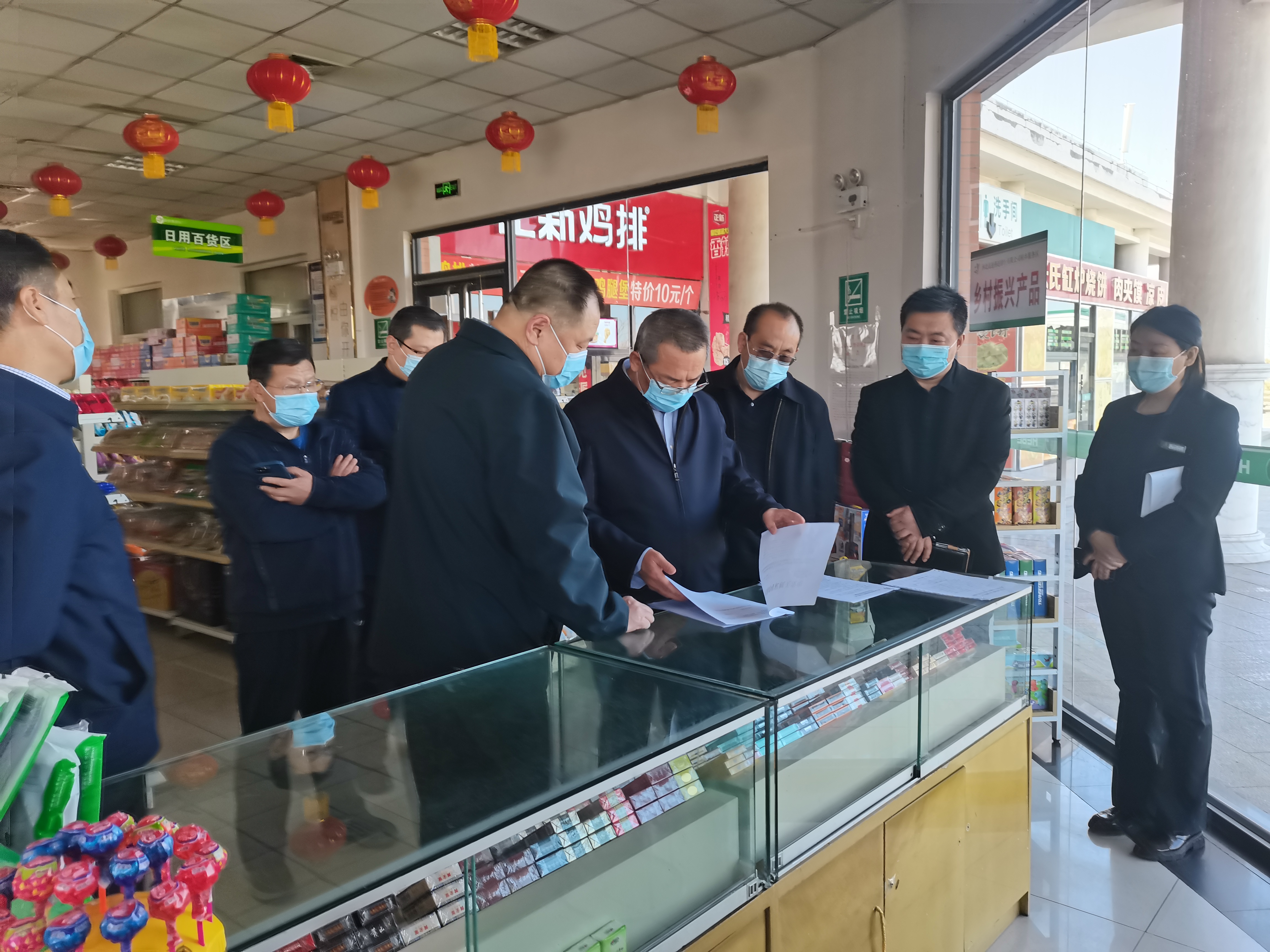 张建公深入服务区前后广场、加油站、超市、收费站上下道口、收费岗亭等一线场所,认真检查工作人员防护用具佩戴情况、消毒用品配备及消杀情况、交通运输部《公路服务区和收费站新冠肺炎疫情防控工作指南(第四版)》学习落实情况、测温枪准确度情况,详细询问了车流量情况、防控物资储备情况、各场所具体防控工作流程、防护用具更换频次、职工倒休情况及核酸检测频次、职工上下班通道及收费站周边路线通道管控情况、黄码处置流程、测温验码有无盲区等情况,叮嘱职工严把测温环节,做好个人防护,坚决守住来之不易的防控成果。