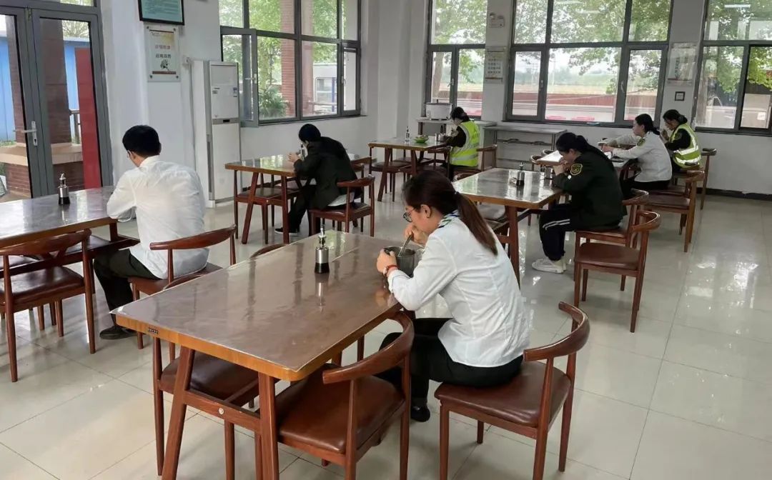 图为枣强收费站严格执行疫情防控要求,分座就餐。