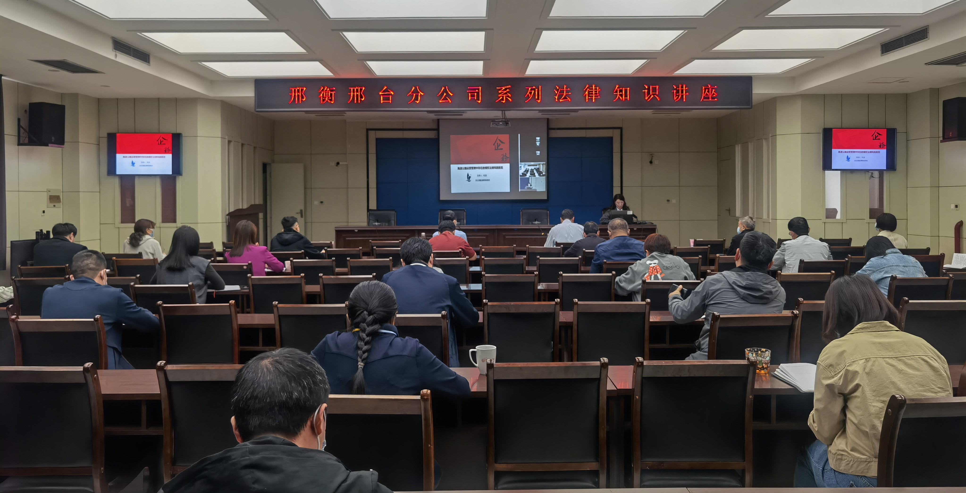 为进一步增强依法治企观念,提升干部职工的法律专业知识水平和利用法律工具防范风险的能力,结合分公司2022年重点工作安排,4月29日,邢衡邢台分公司举办系列法律知识讲座培训。按照疫情防控工作要求,分公司领导班子,各部室、各单位在岗干部职工共计400余人通过现场+视频的形式参加了培训。培训会由分公司党委委员、副总经理秦磊主持。