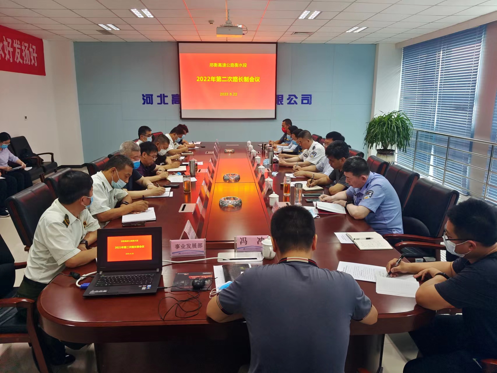 6月22日,为深入推进路警一体化联勤联动工作,切实提高通行效率,努力创收增收,邢衡衡水分公司组织召开了第二次路长制会议。分公司党委书记、总经理马进会,副总经理冯冲、信占莹,衡水市交通运输局副局长张海清,高速交警衡水支队、高速交警冀州大队、高速路政衡大支队、高速路政冀州大队、分公司各单位及相关部室负责人参加了会议。