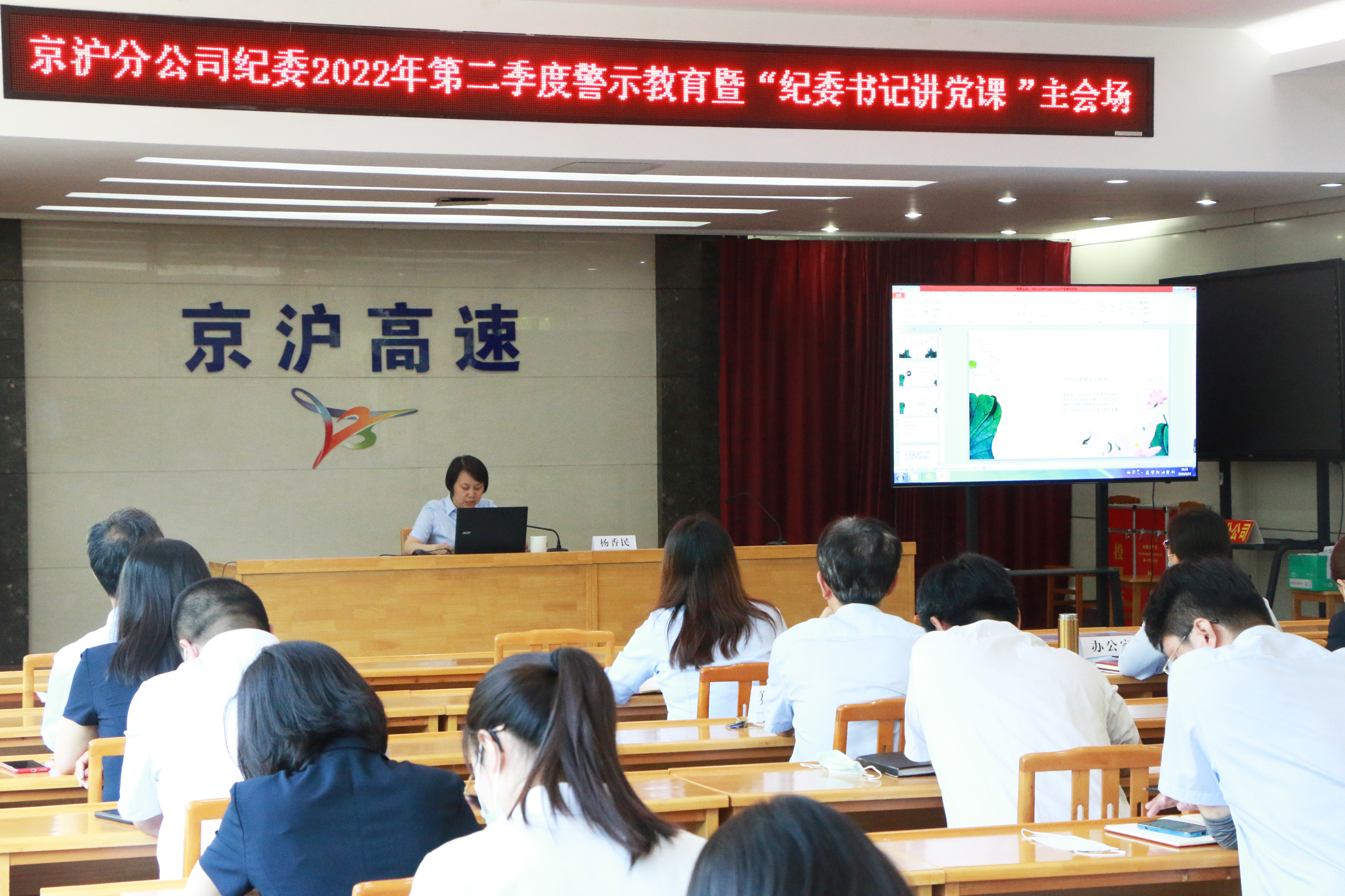 为进一步提高党员干部党性修养和思想理论水平,筑牢拒腐防腐的思想防线,按照工作安排,6月23日下午京沪分公司纪委组织开展第二季度警示教育和“纪委书记讲党课”学习活动。本次活动以视频会议形式开展,主、分会场共计110名党员同志参加。