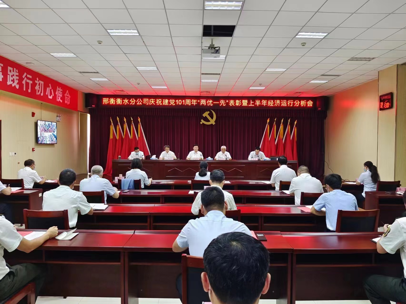 6月30日,在“七一”建党节来临之际,邢衡衡水分公司组织召开了庆祝建党101周年“两优一先”表彰暨上半年经济运行分析会。分公司党委书记、总经理马进会,副总经理张吉东,纪委书记孙世忠,副总经理冯冲、信占莹出席了会议。会议由张吉东主持。