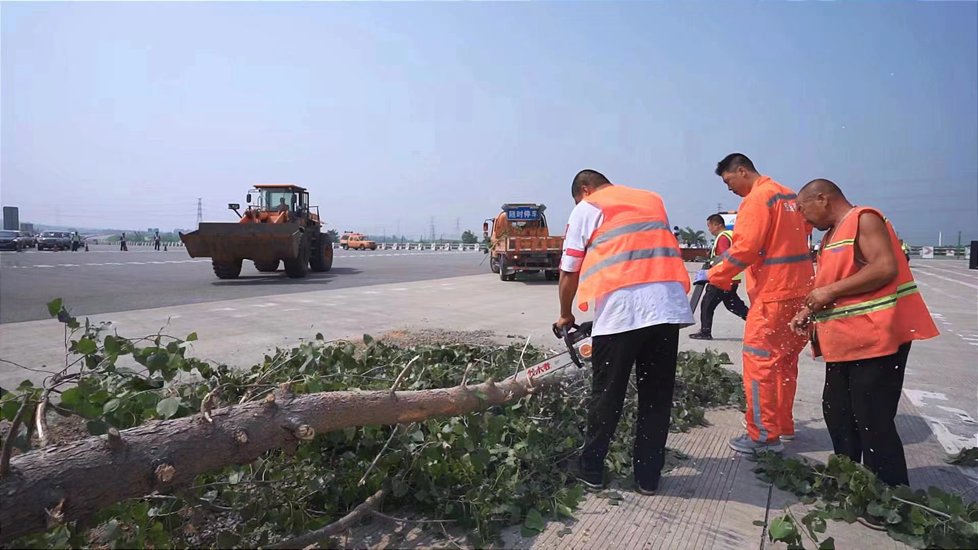 演练模拟秦皇岛地区出现强对流天气,祖山收费站北京方向出口匝道发生滑坡和大树倾倒,导致边沟水位上涨和车辆通行阻断事件。分公司路况信息中心及时传达险情信息,高速交警、高速路政、秦皇岛工区密切配合,通过摆放禁行标志、发布绕行信息、封锁现场、锯割倾倒树木、清理路面堆积物、木桩和沙袋围挡边坡、抽排边沟积水、收费站人员给滞留人员送温暖等措施,高效快速对边坡水毁险情进行了应急处置。