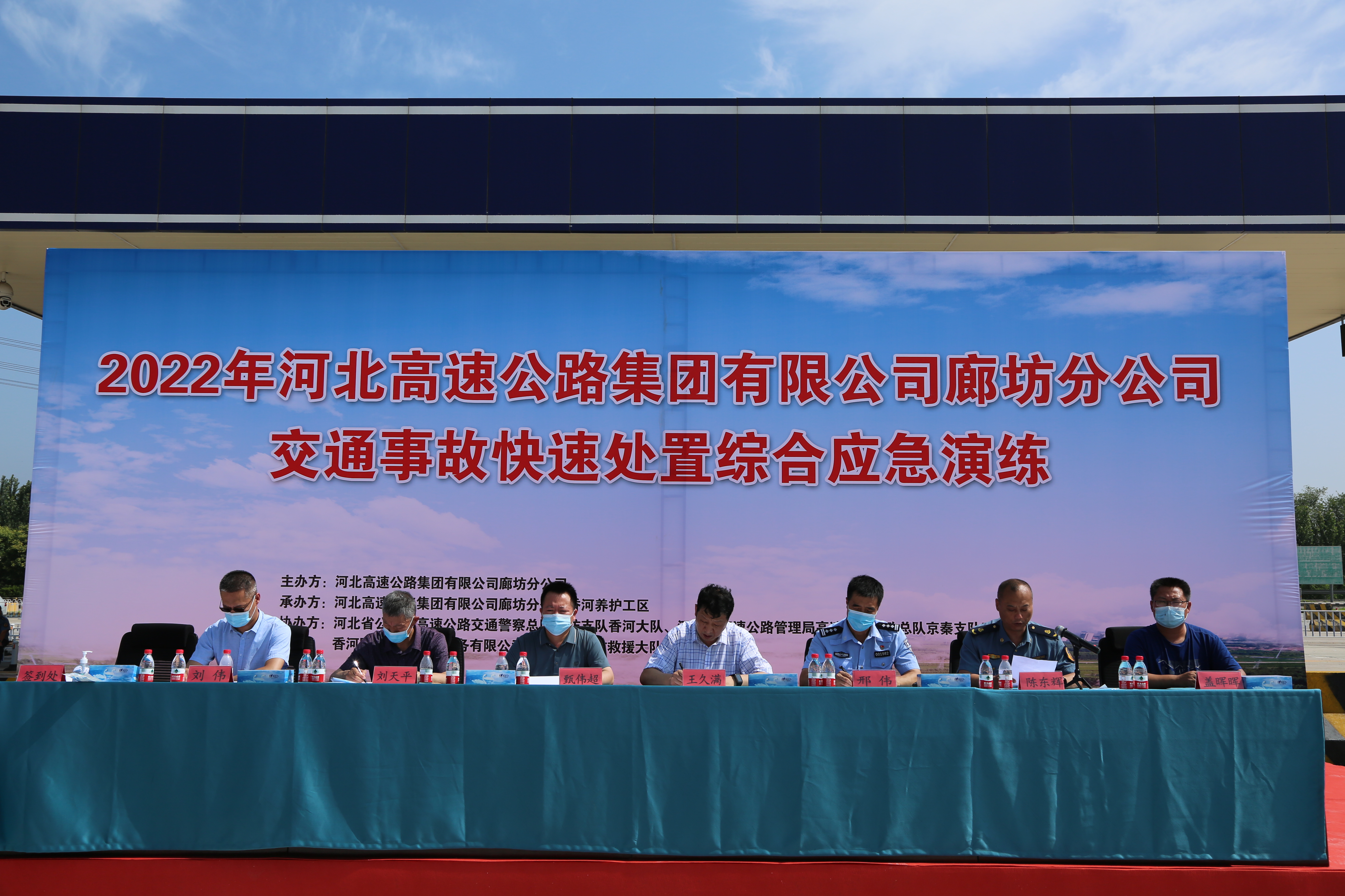 为进一步检验各部门应对高速公路交通事故的联勤联动机制,不断提升清障救援效率,最大限度提高道路利用率,有效保障旅游高峰期高速公路的安全畅通,7月13日上午,廊坊分公司组织开展交通事故快速处置综合应急演练。高速交警香河大队大队长邢伟、高速路政廊坊大队大队长陈冬辉,廊坊分公司副总经理王久满、副总经理甄伟超及相关部室、基层单位主要负责人观摩此次演练。