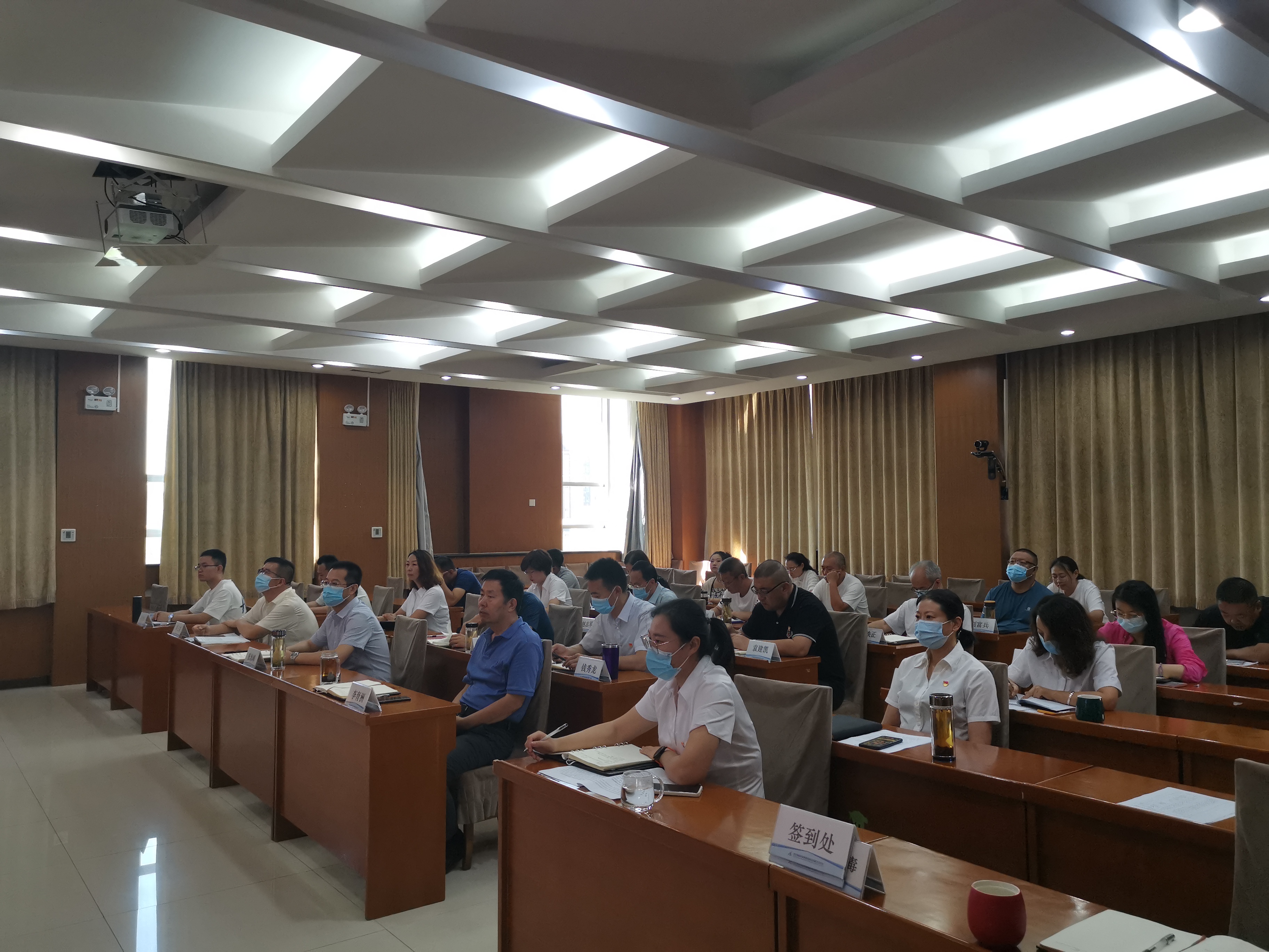 会议以视频形式召开,分公司领导班子,各部室、直属中心、机电中心主要负责人及安全员,安全环保部全体在主会场,各收费站、养护工区主要负责人、班股长、机电维护员、安全员在分会场参会。