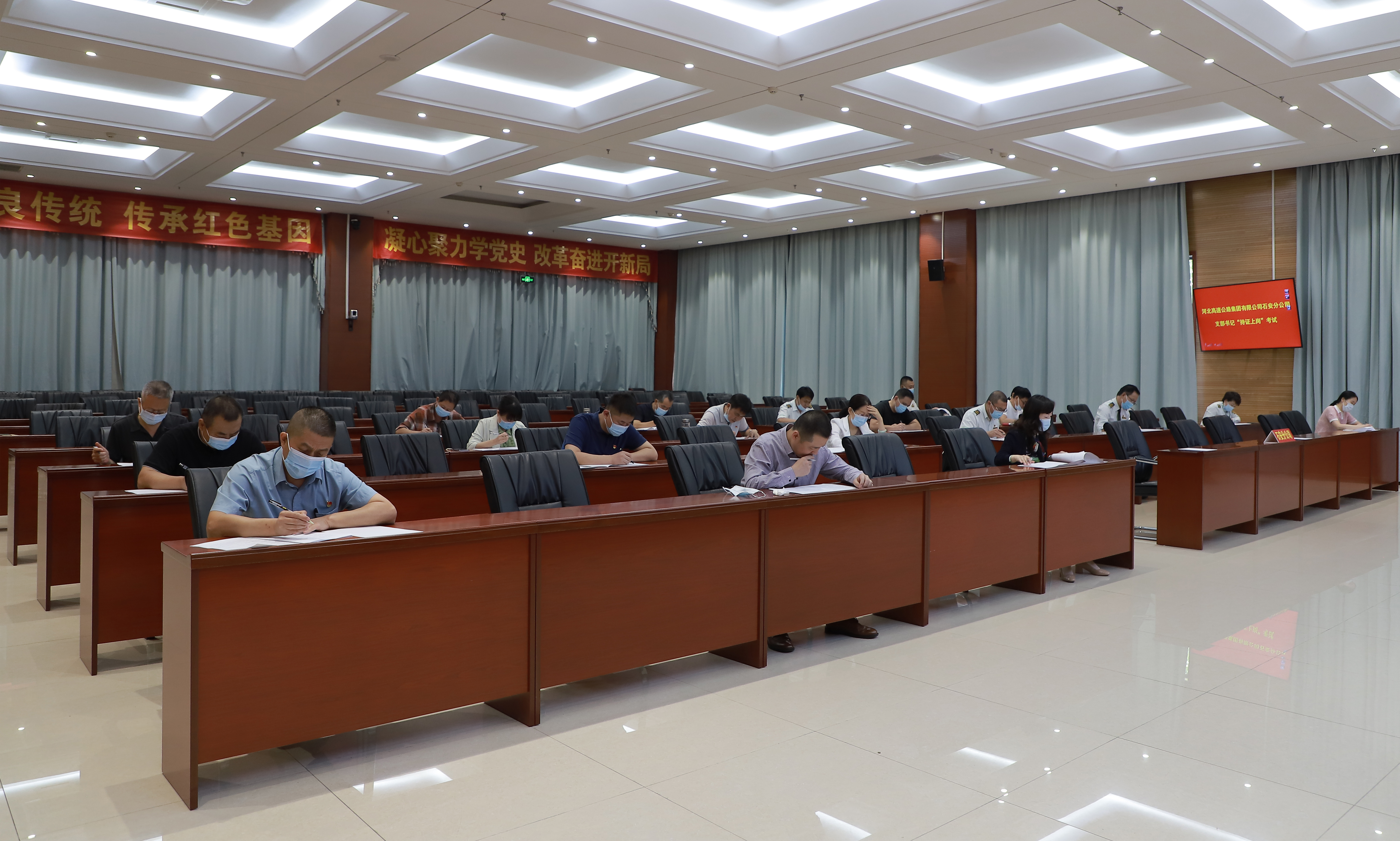 考虑疫情防控需要,此次考试设石家庄、邢台、邯郸3个考场,监考组由分公司办公室、纪检监督室、党委组织部相关人员组成,分赴各片区监考,同时开展远程视频监考和全程实时录像,最大程度保证了考试的公平公正。据统计,此次考试合格率达100%。
