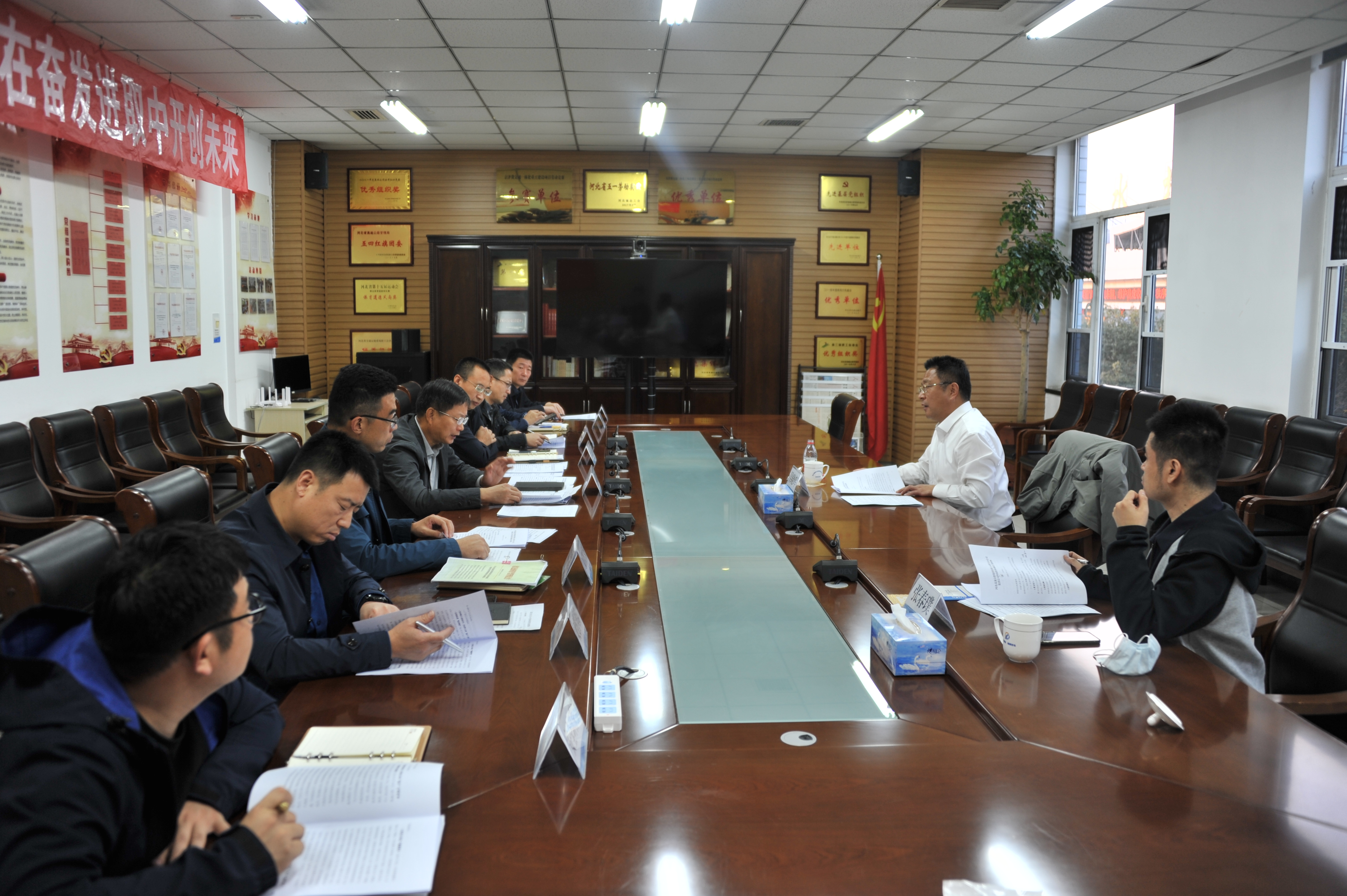 10月11日,河北高速集团专职外部董事吴晓辉到荣乌分公司调研指导工作。荣乌分公司党委书记、总经理孙明山、副总经理王爱军,以及机关有关部室负责人陪同调研。