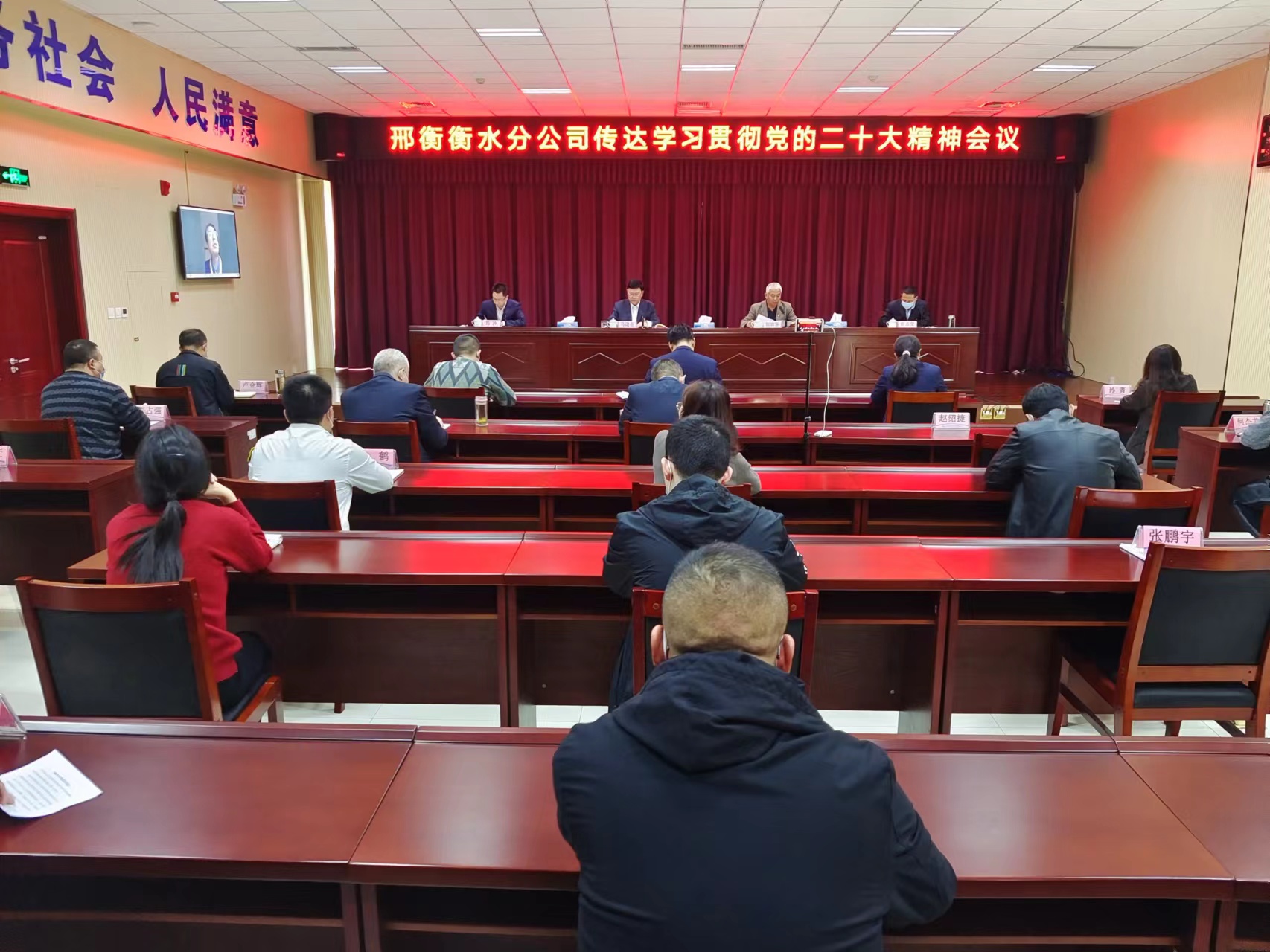 11月2日,为贯彻落实中央、省委、省国资委党委和集团公司党委关于深入学习贯彻党的二十大精神有关要求,切实推动党的二十大精神在分公司落地生根、开花结果,邢衡衡水分公司组织召开了传达学习贯彻党的二十大精神会议。分公司党委书记、总经理马进会,副总经理张吉东,纪委书记孙世忠,副总经理冯冲、信占莹及总部各部室、直属单位主要负责人等有关人员参加了会议。会议由张吉东同志主持。