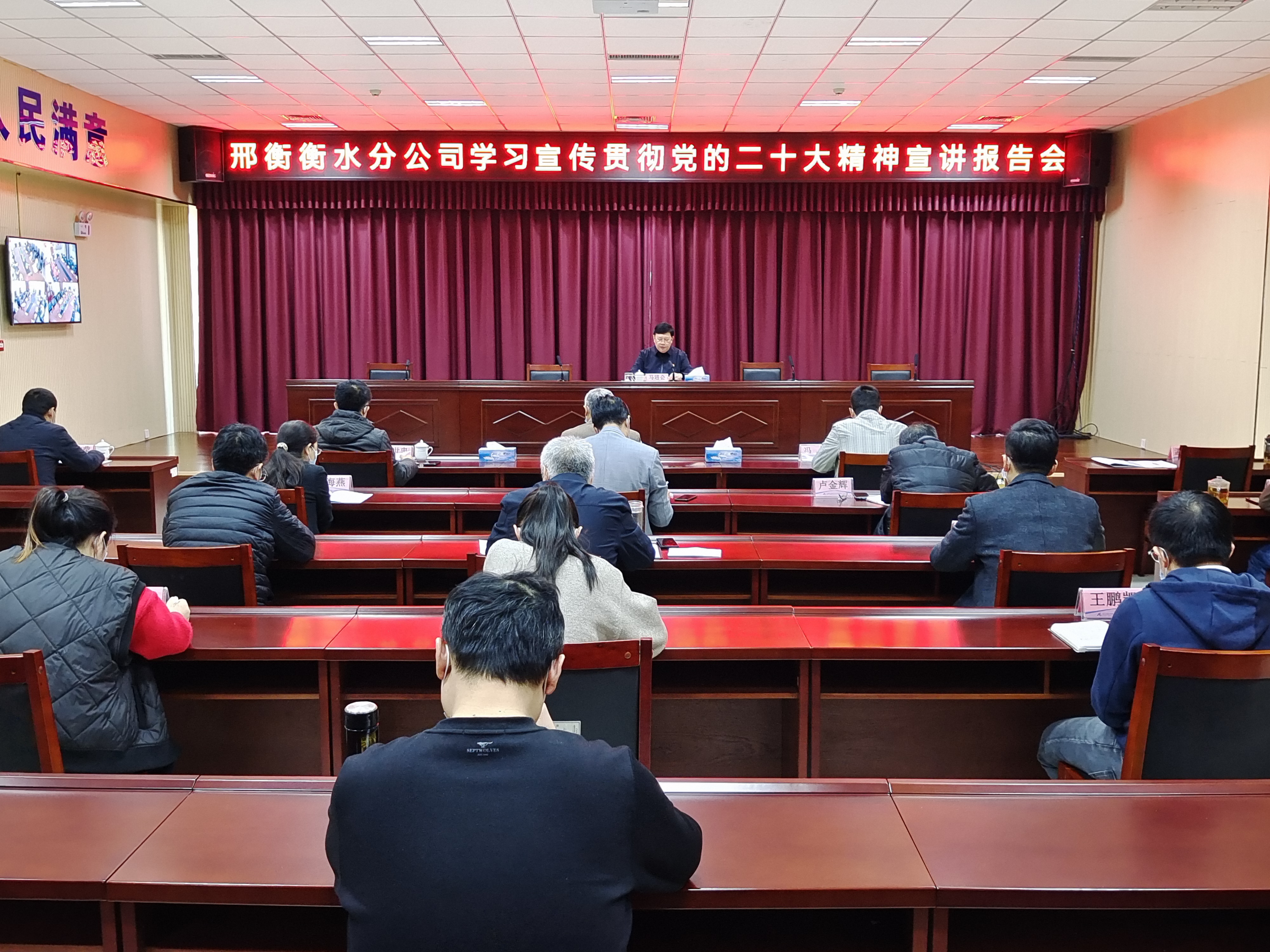12月2日,按照省委、省国资委和集团公司党委部署要求,为确保党的二十大精神进机关、进站区、进班组、进一线,邢衡衡水分公司组织召开了学习宣传贯彻党的二十大精神宣讲报告会,分公司党委书记、总经理马进会做专题宣讲。副总经理张吉东、纪委书记孙世忠和副总经理冯冲、信占莹以及总部各部室、各站区主要负责人和职工代表参加了会议。