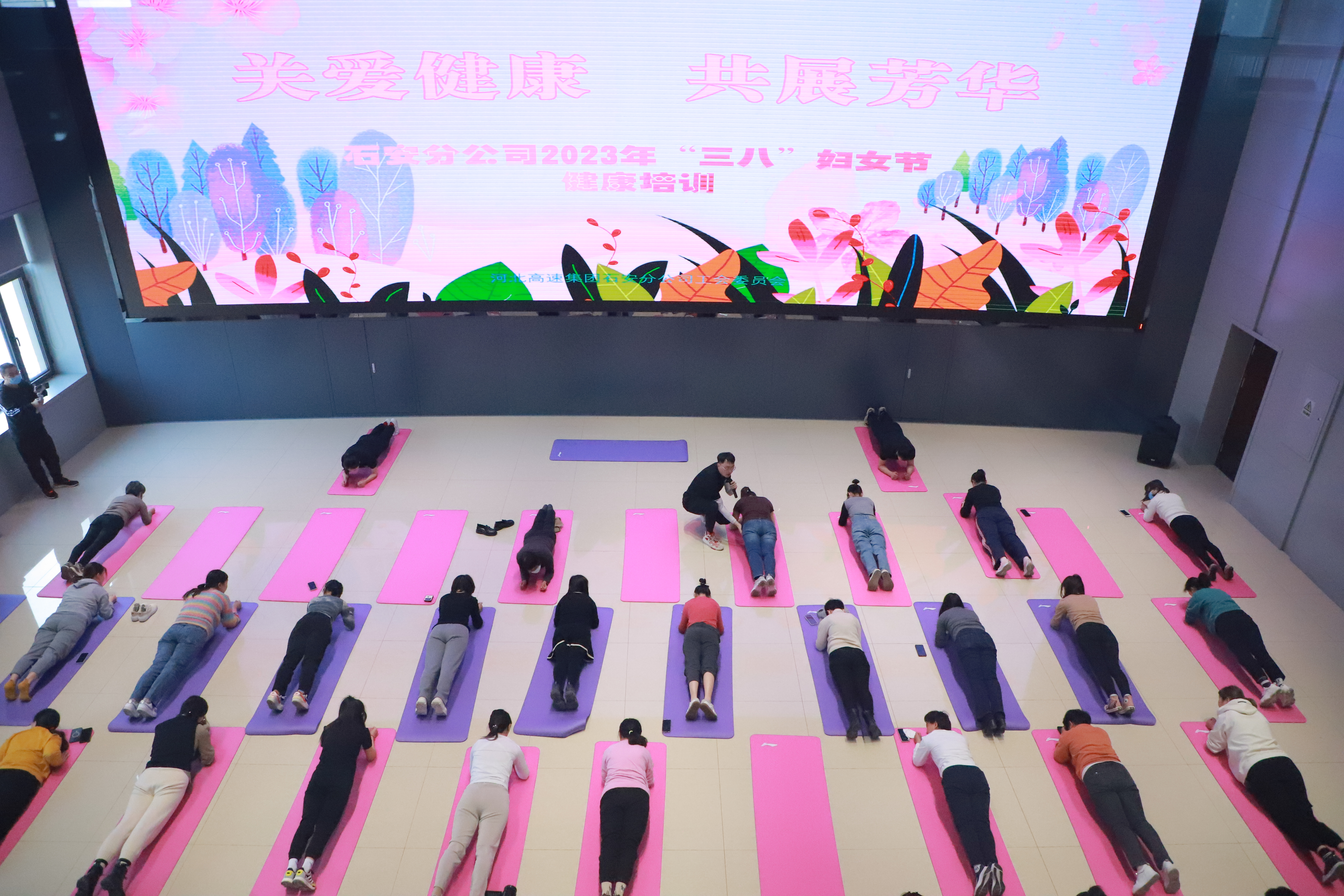在分公司总部,一场体态矫正健康培训在热身活动中拉开帷幕。此次培训特邀专业健身教练进行授课,通过系统地动作讲解,帮助女职工改善不良体态,塑造健康优美形体。参训的女职工在教练和助教的带领下,认真学习每一个动作,并不断巩固动作要领。培训在狭路相逢互动小游戏中达到高潮,现场女职工分为两队,每队成员二人一组,以接力赛形式顶球绕圈跑,加油声、呐喊声此起彼伏,气氛热烈,张张笑脸如靥。