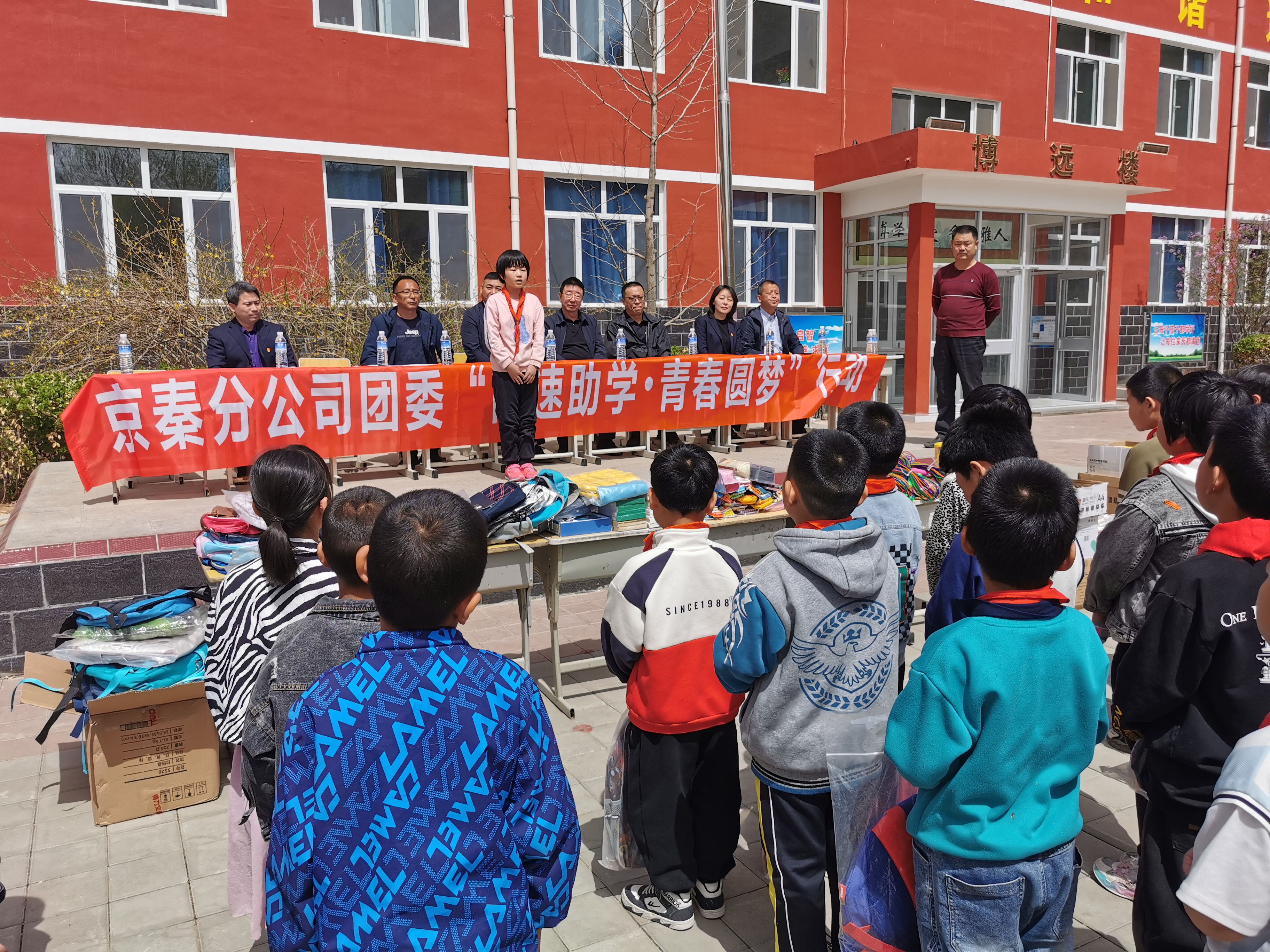 早春四月,春意盎然,4月21日上午,在集团公司团委及京秦分公司党委的统一部署下,京秦分公司工会和团委快速行动,到定点扶贫村承德县鞍匠镇南沟村一间房小学开展“高速助学 青春圆梦”公益助学活动。党委委员、副总经理、工会主席王增全及团委、工会办公室、基层单位团员青年代表参加了活动。