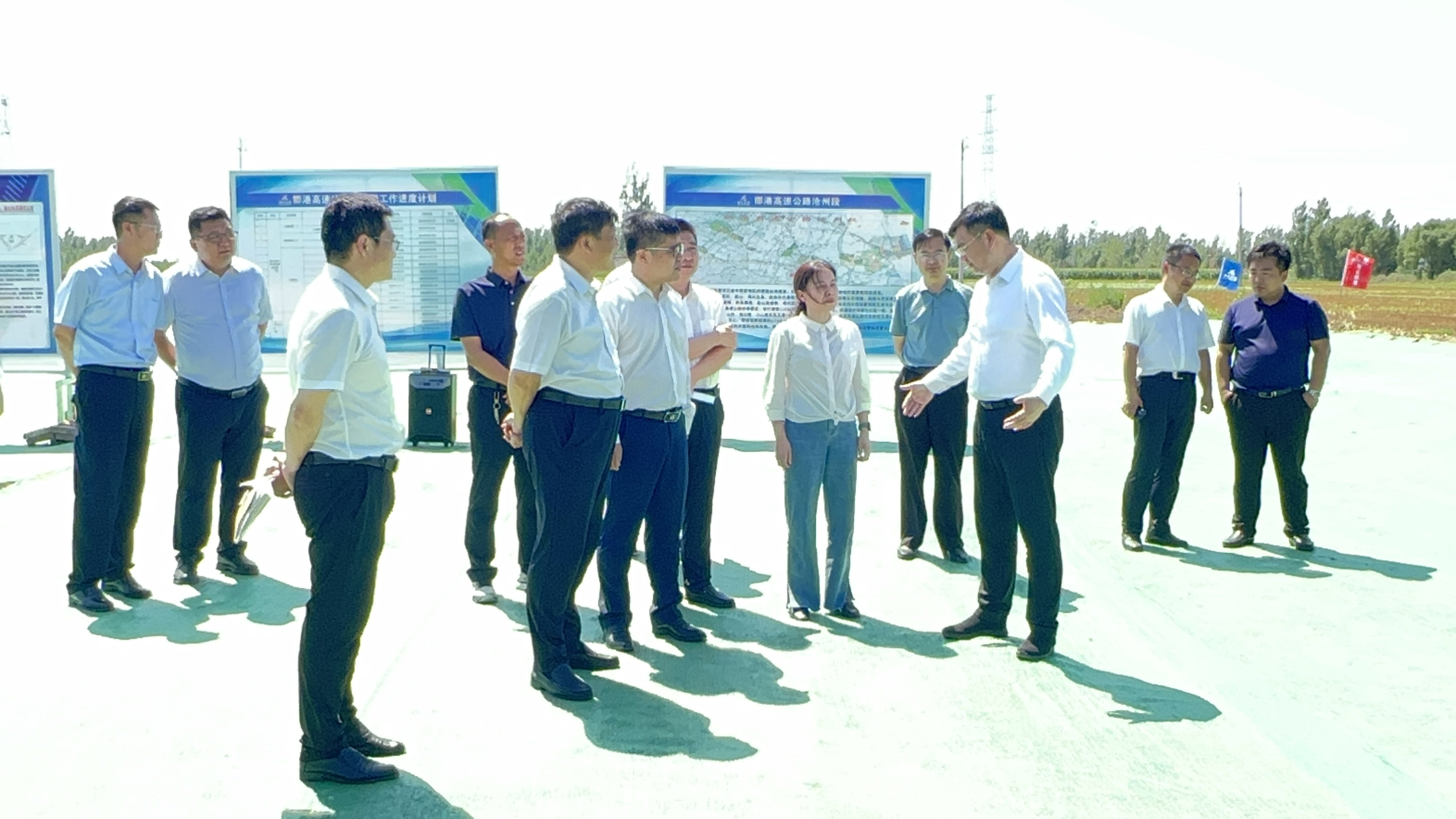 6月30日下午,沧州市委常委、秘书长田嘉宁到邯港高速公路建设项目东光段进行现场督导,邯港公司总经理彭亚荣、副总经理张明陪同调研。