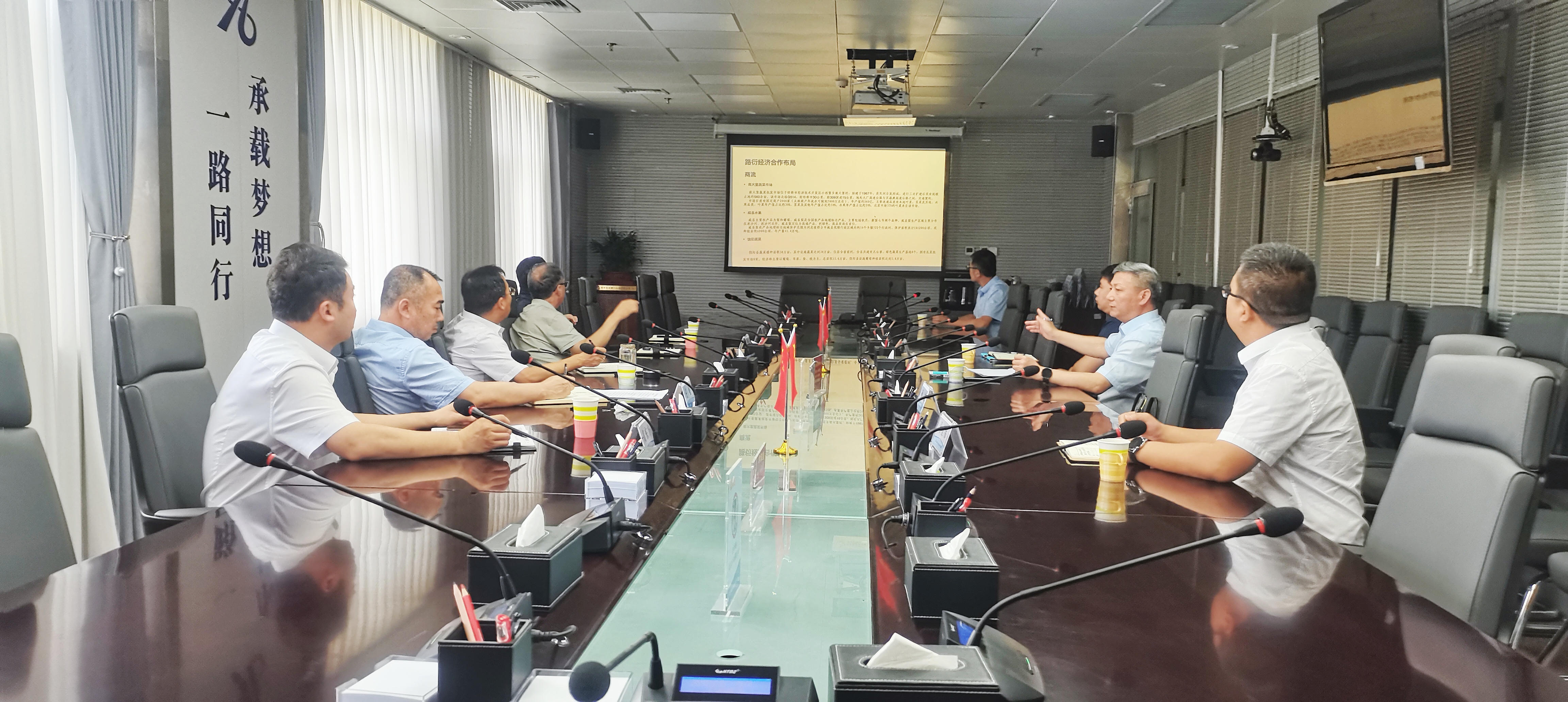 会议听取了物流公司关于双方合作方向及路衍经济物流园区建设布局等情况介绍。张军对物流公司的到来表示热烈欢迎,并介绍了业务板块、资源优势等情况。张虎就物流公司经营发展理念、发展思路及发展布局等进行了详细介绍。