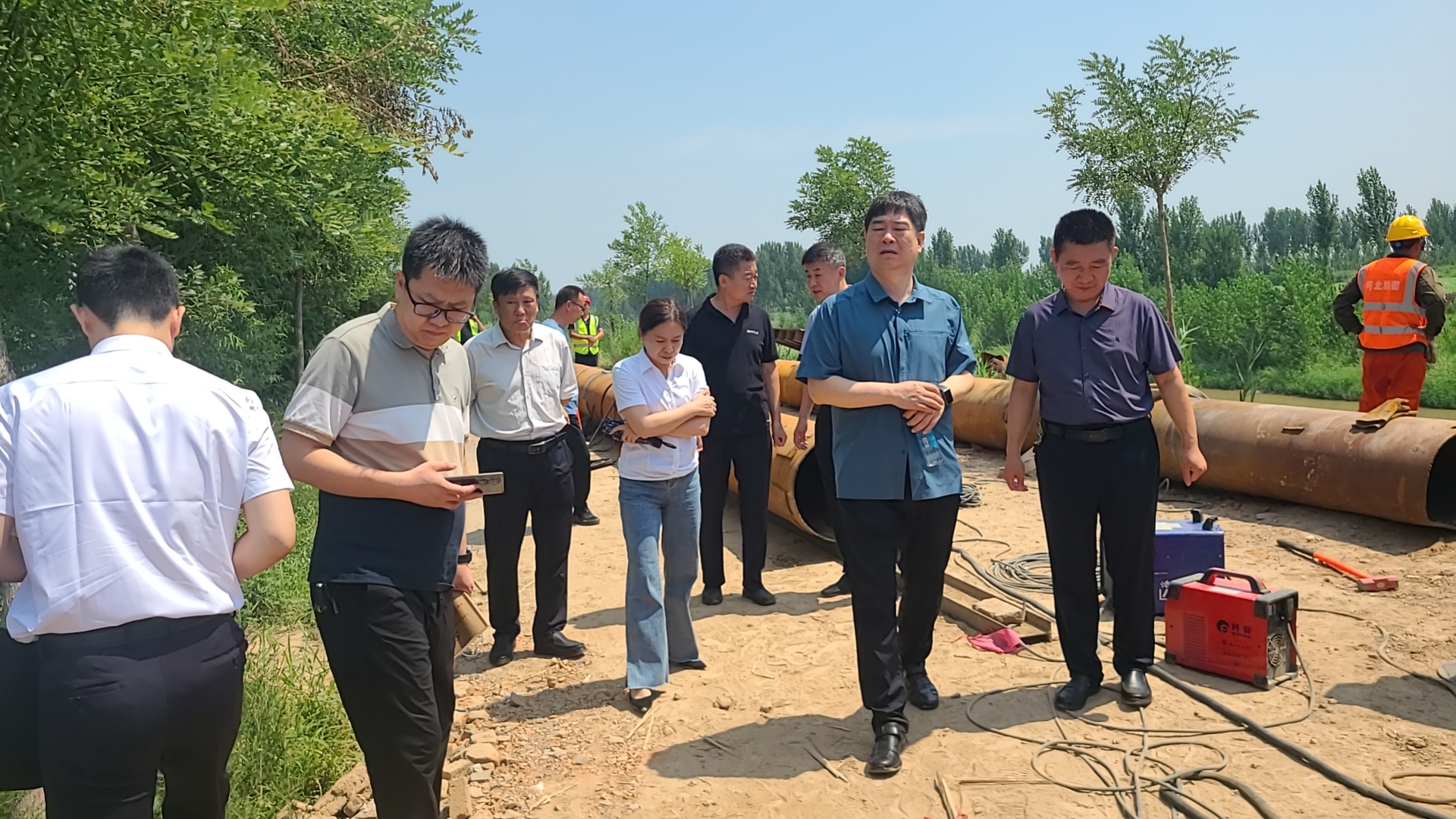 7月10日,沧州市交通运输局局长许建军一行到邯港高速调研项目建设情况,邯港公司党支部书记、执行董事于建游及各县建设协调指挥部主要负责人陪同调研。