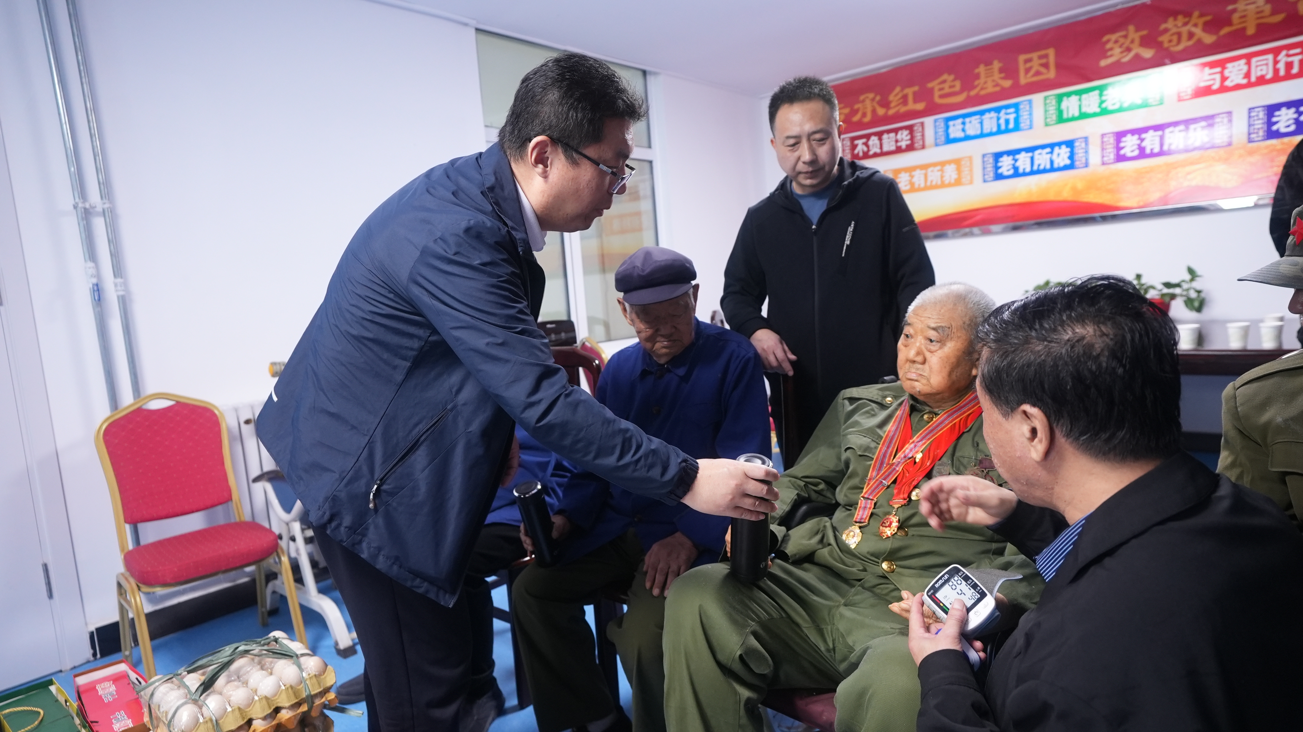 为继承和弘扬拥军敬老的优良传统,11月2日下午,物流公司党总支联合正定县民政局、河北省爱心公益协会组织开展“追忆峥嵘岁月 赓续红色血脉”慰问革命荣退老军人活动,共同为革命荣退老军人送去关怀与温暖,向他们送上诚挚的祝福并致以崇高的敬意。
