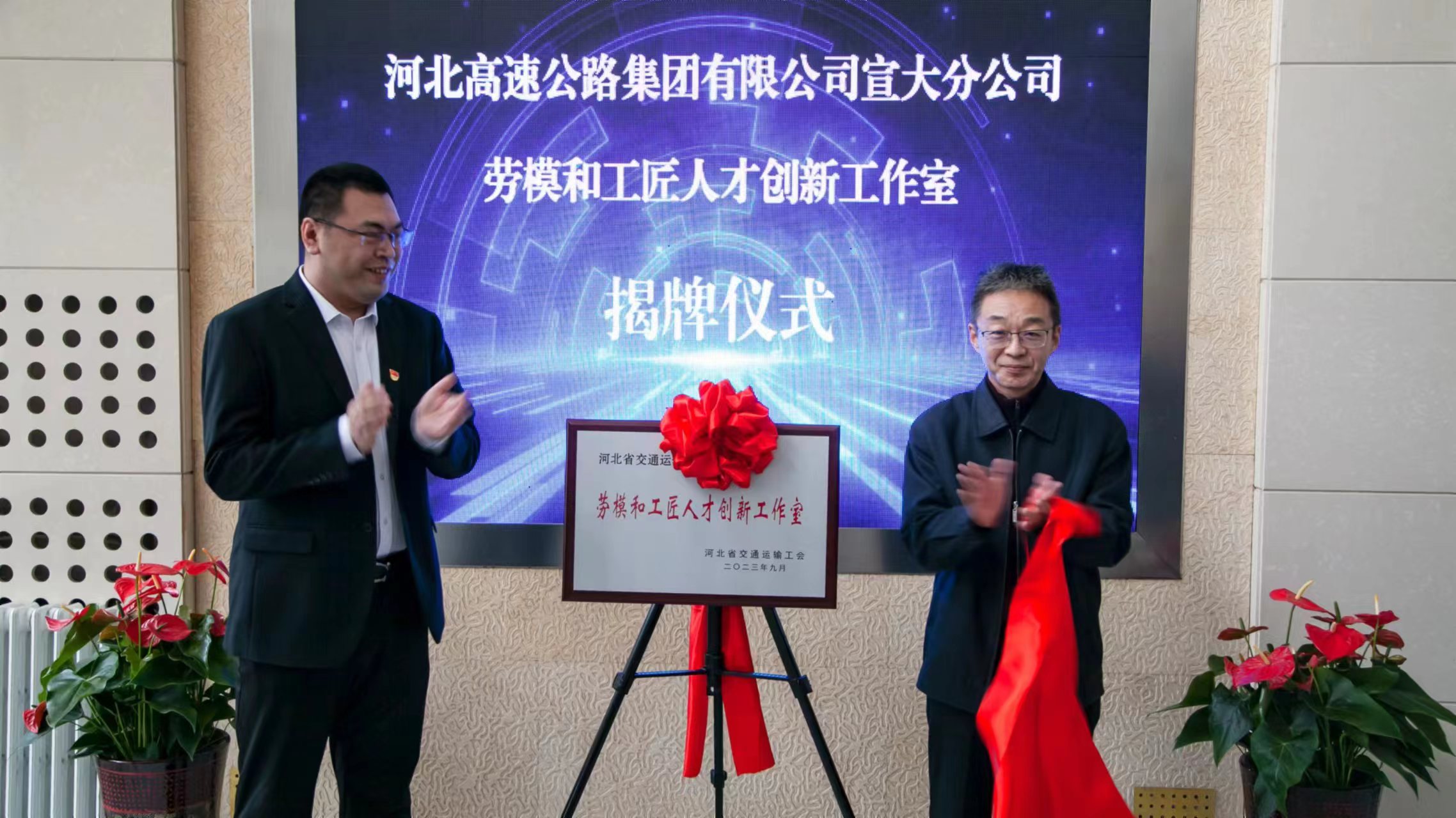 12月6日上午,宣大分公司“洪海滨创新工作室”揭牌仪式在分公司总部一楼举行。分公司党委书记、总经理杜国庆,党委委员、副总经理、工会主席冀伟为工作室揭牌。党委委员、副总经理李宏岳,总经理助理李少龙出席活动。