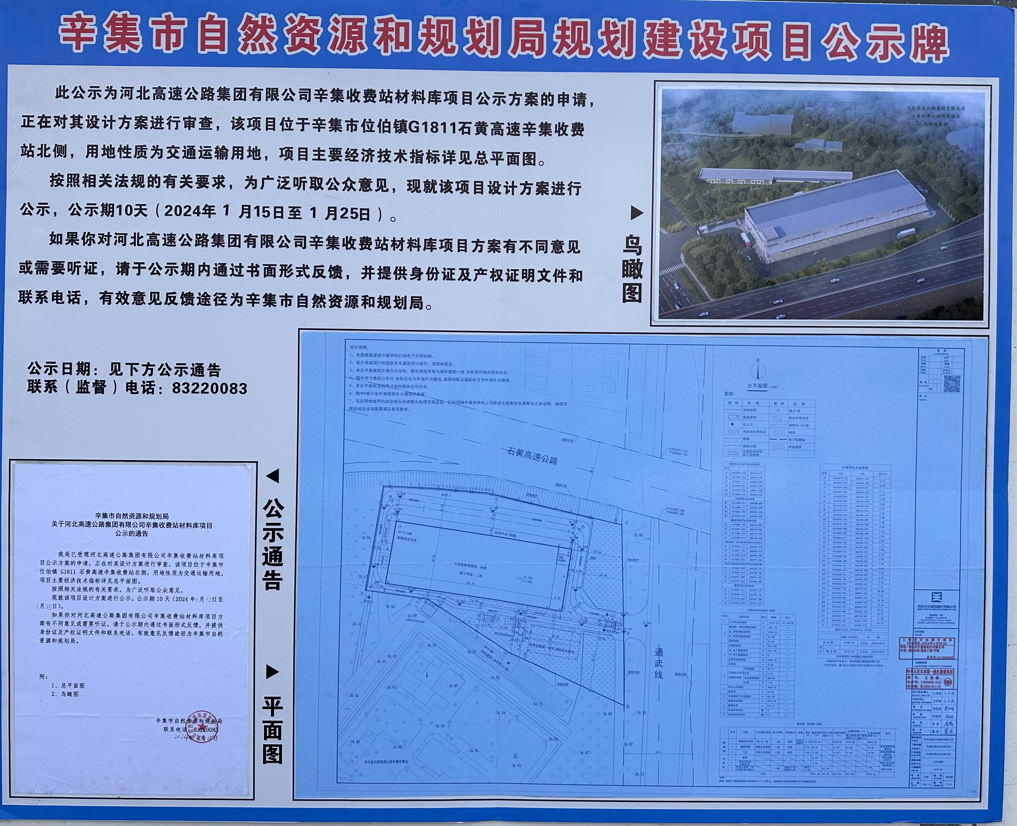 为加快完成项目报建程序,确保项目按计划启动建设,河北高速物流公司专门成立项目推进工作组多次与设计单位及地方相关部门沟通协调,加快完成总规划图纸修订和有关审批流程。在完成初步审批进入公示前,河北高速物流公司迅速组织相关人员到场按照辛集市自然资源局要求进行现场张贴公示,确保公示工作顺利开展。据了解,该项目预计年内建设完工,年底前运营公司实现试运营。