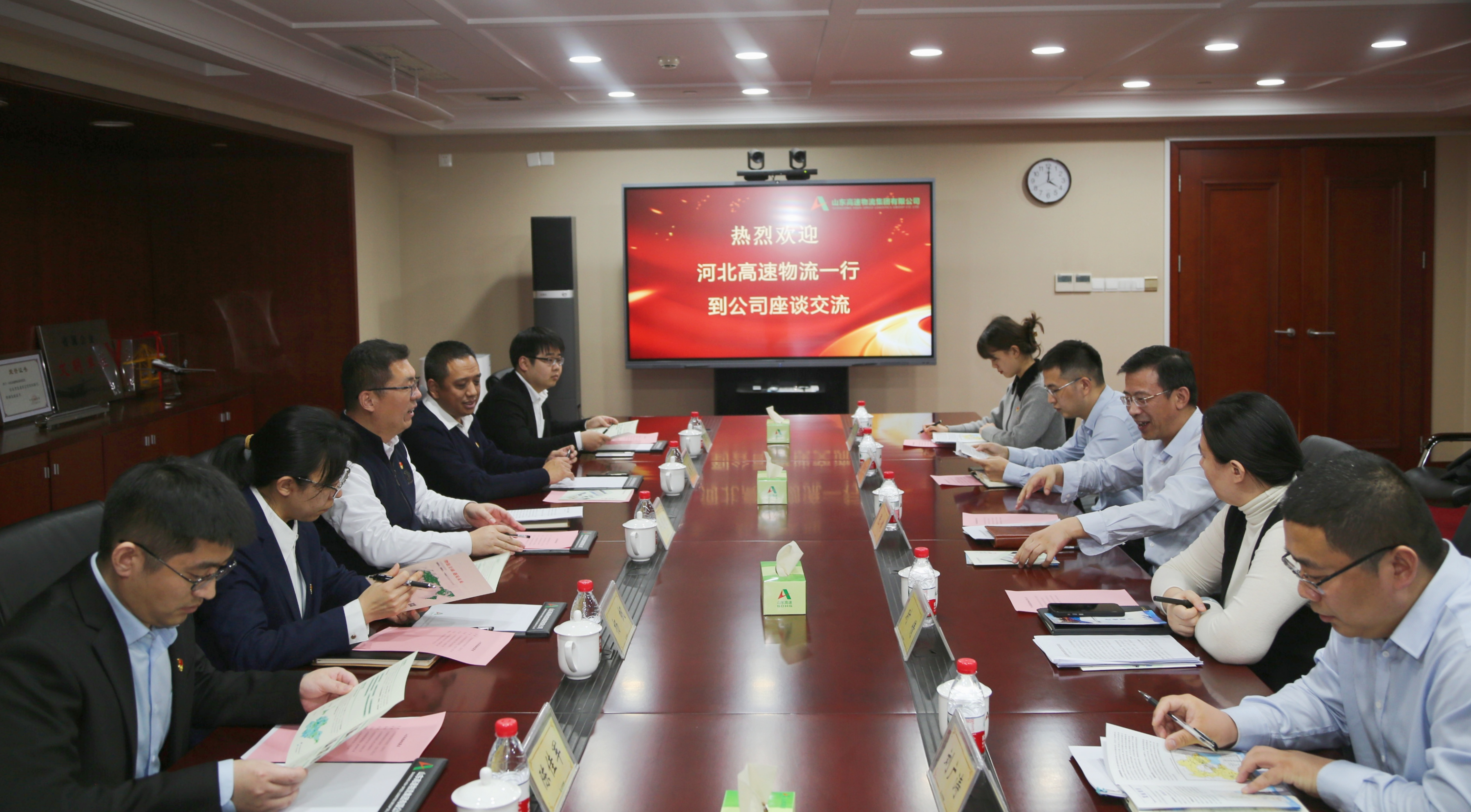 1月18日,河北高速集团物流有限公司党总支纪检委员乔志明带队到山东高速物流集团有限公司,就纪律检查、党的建设和企业管理等方面工作开展对标交流,并实地观摩了齐鲁号全球购商城。山高物流集团党委委员、纪委书记张健,物流公司党总支委员、副总经理高继生出席交流座谈。