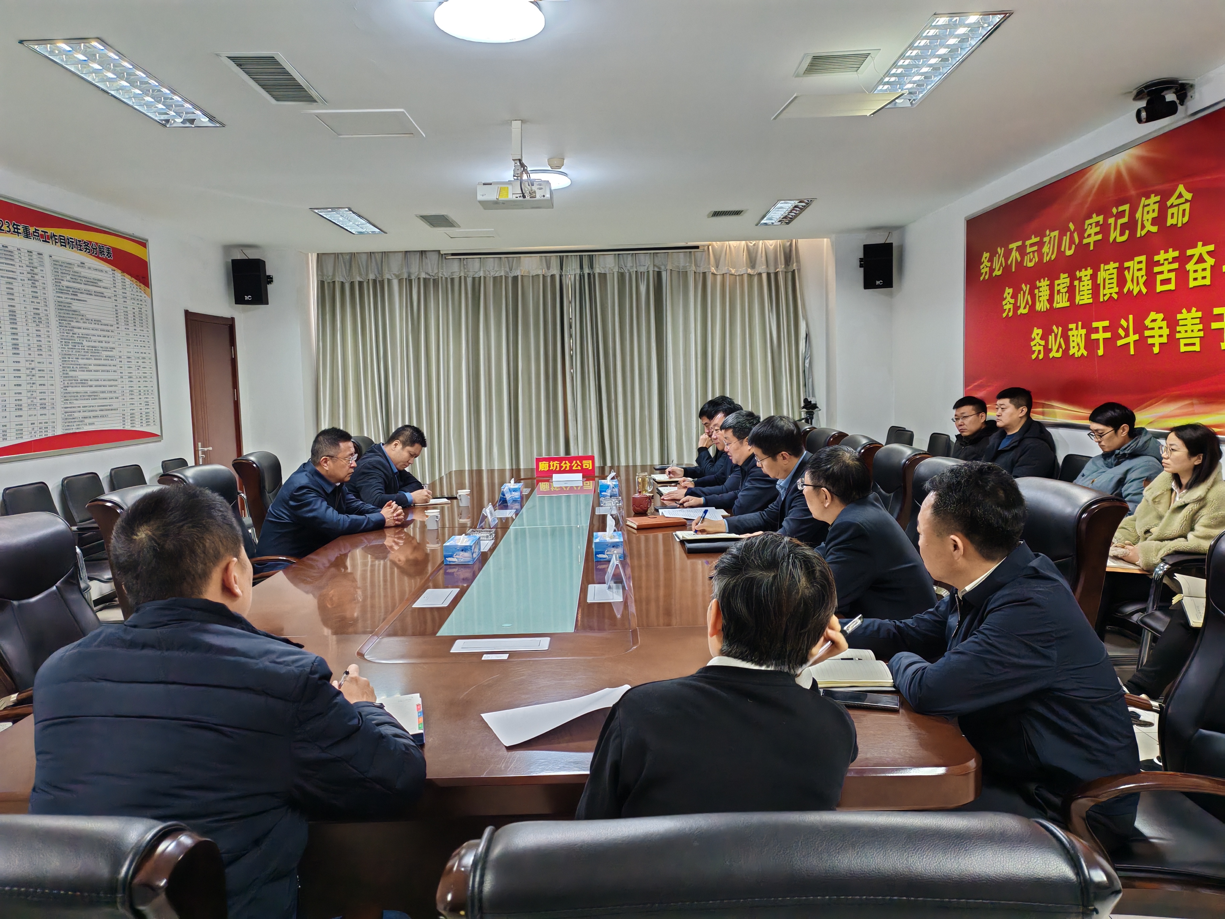 1月25日至26日,集团公司专职外部董事吴晓辉到廊坊分公司调研指导工作,廊坊分公司党委书记智韶宇一行陪同。