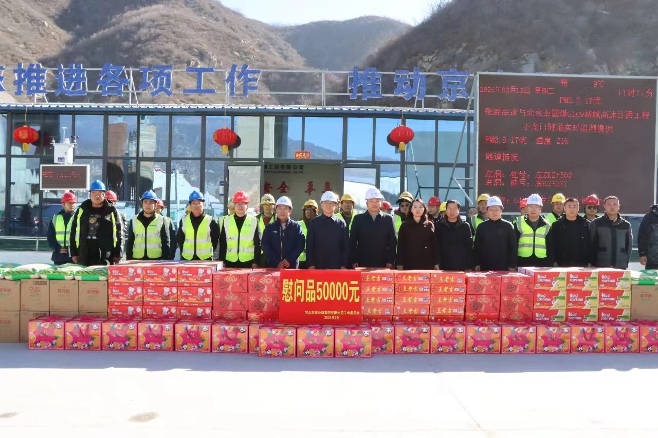 2月13日,大年初四,集团公司党委书记、董事长张建公到G109新线高速连通工程施工现场慰问参建人员。