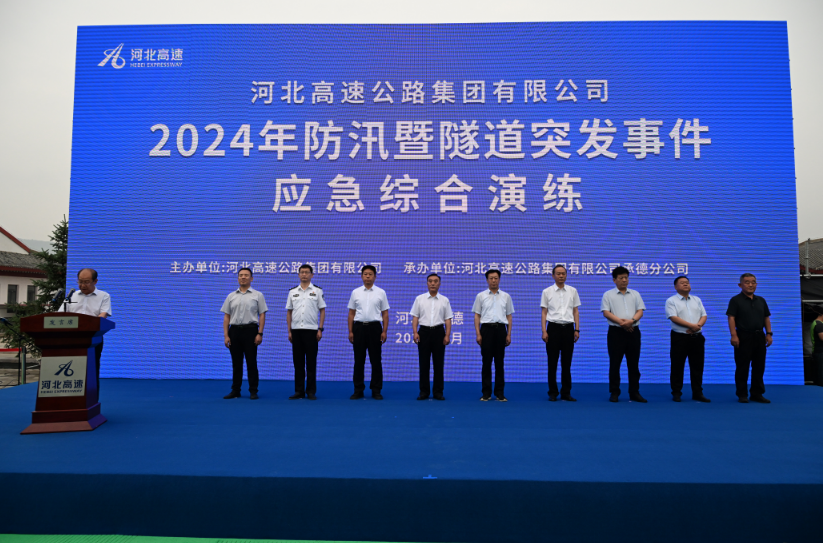 6月21日上午8:30,承赤高速公路围场服务区。“现场指挥组准备完毕!” “现场救援组准备完毕!”“抢通工作组准备完毕!”“设备保障组准备完毕!”“演练开始!”随着演练总指挥一声令下,河北高速集团2024年防汛暨隧道突发事件综合应急演练正式开始。
