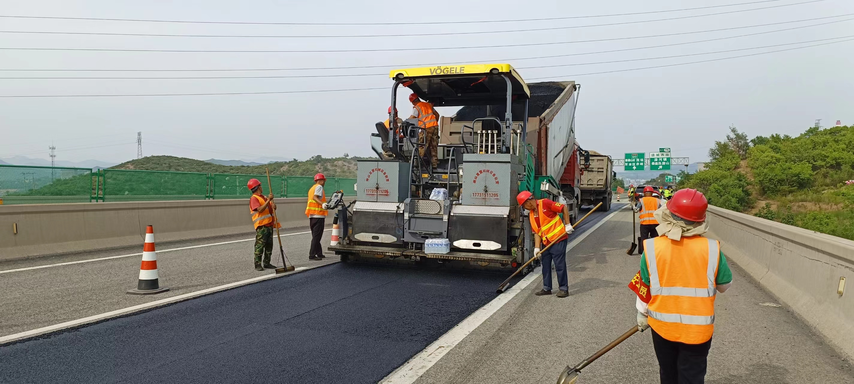 在集团所属国高网路段路面技术状况提升项目(G45承赤高速)微罩面摊铺施工现场。养护分公司养护工程施工队正在摊铺沥青路面,沥青混凝土现场摊铺温度高达160℃,摊铺现场,热浪滚滚,仿佛连空气都在燃烧。施工人员手持铁锹、推耙,穿梭在滚烫的沥青之间,脚踩在滚烫的沥青路面上瞬间高度击穿鞋底,汗水浸湿了他们的衣衫,滴落在滚烫的路面上,瞬间化为无形。然而,他们却仿佛浑然不觉,只是专注地工作着,用心中的信念和手中的工具,将一条条平坦而坚实的高速路面奉献给司乘人员。