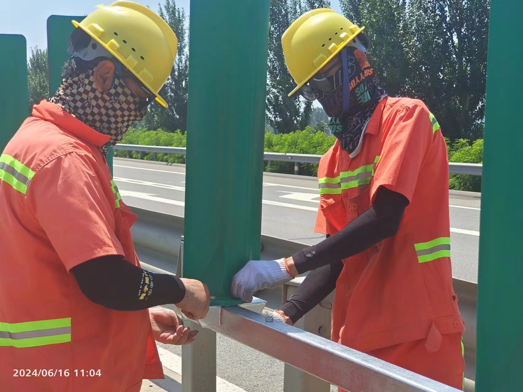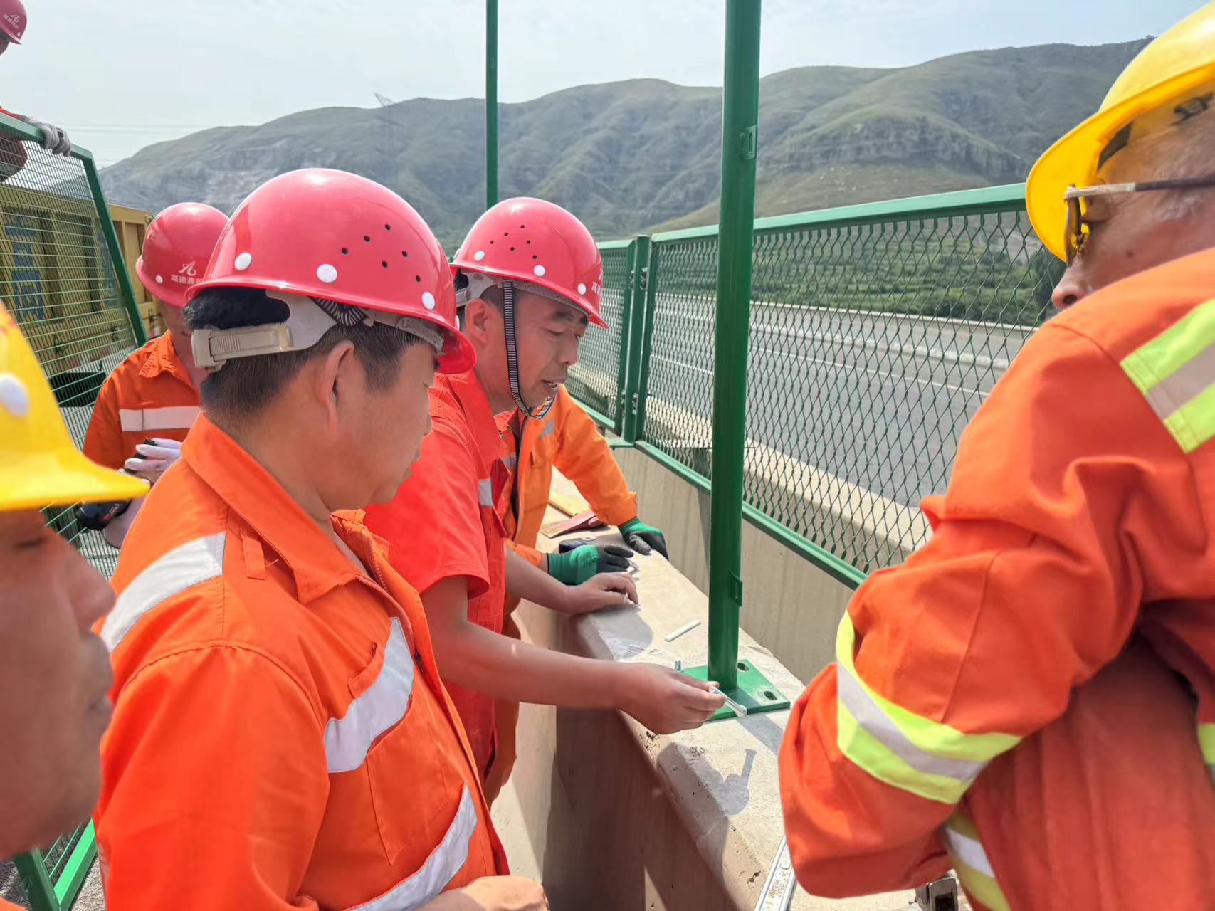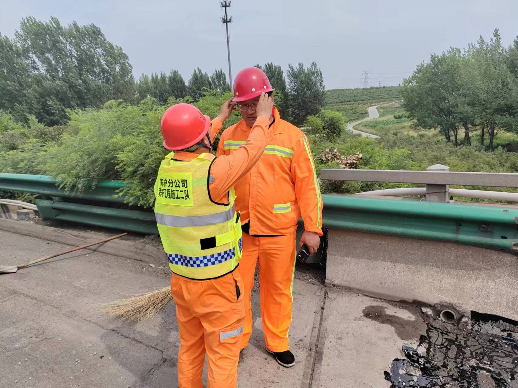 在荣乌高速南水北调大桥养护施工现场,养护分公司雄安分中心坡仓养护队队长徐克平带领养护队员顶烈日、冒酷暑,身着养护服装,头戴安全帽,紧锣密鼓开展防抛网更换。他们汗流浃背,皮肤被晒得通红,但手中的工作却从未停歇。因为他们知道,自己的每一分努力,都是在为过往车辆和行人的安全保驾护航。