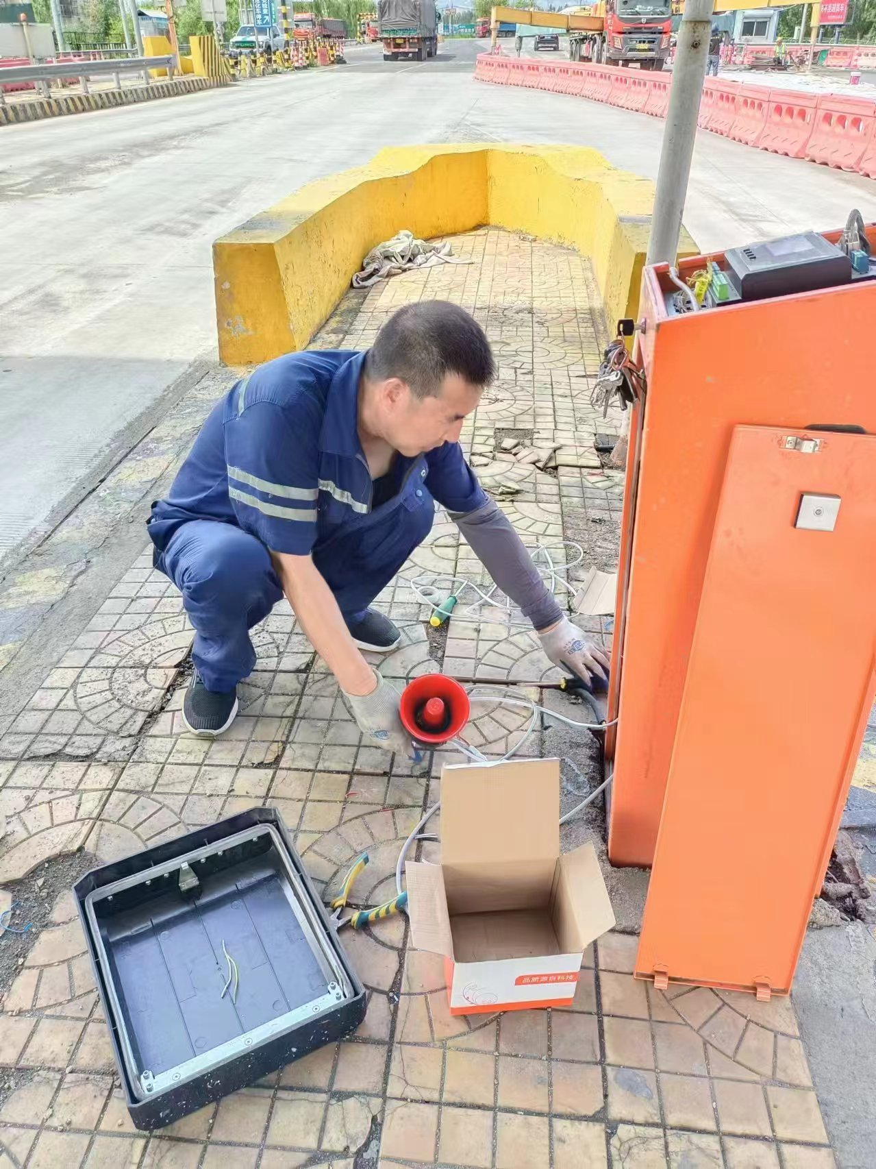 在此之前,站内在升降栏杆终端处,通过固定铝合金箍的方式解决上述问题,效果不大,栏杆有时还是会被车辆撞开。针对这一问题,站内再次提出解决办法,并利用网络与商家联系,制定了一款固定于升降栏杆处的报警器,且与栏杆内部电路相连接,这样栏杆被撞开的同时,报警器就会连续发出警报,工作人员就会第一时间听到报警声,及时到达现场处置。经测试,使用效果良好,是一项减少通行费流失的创新举措。