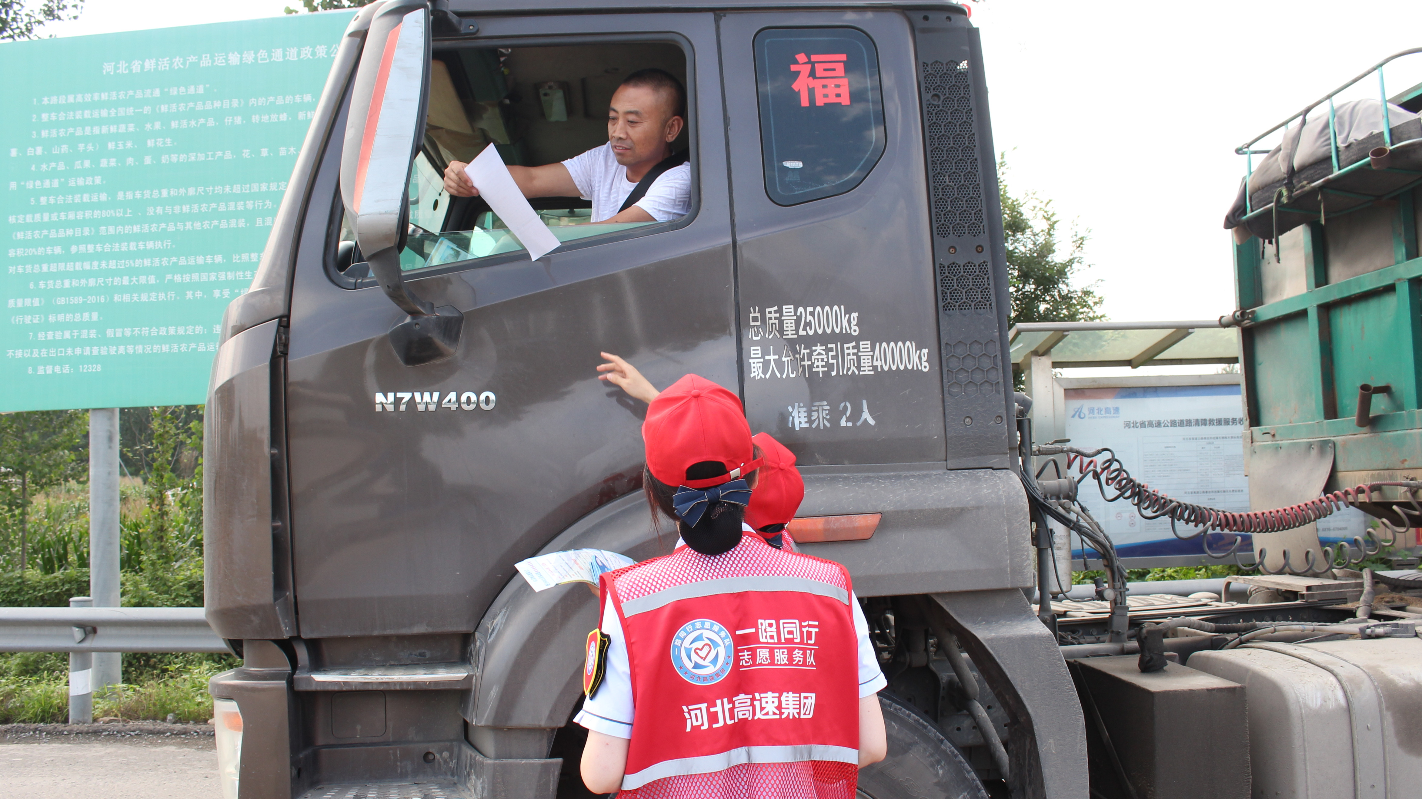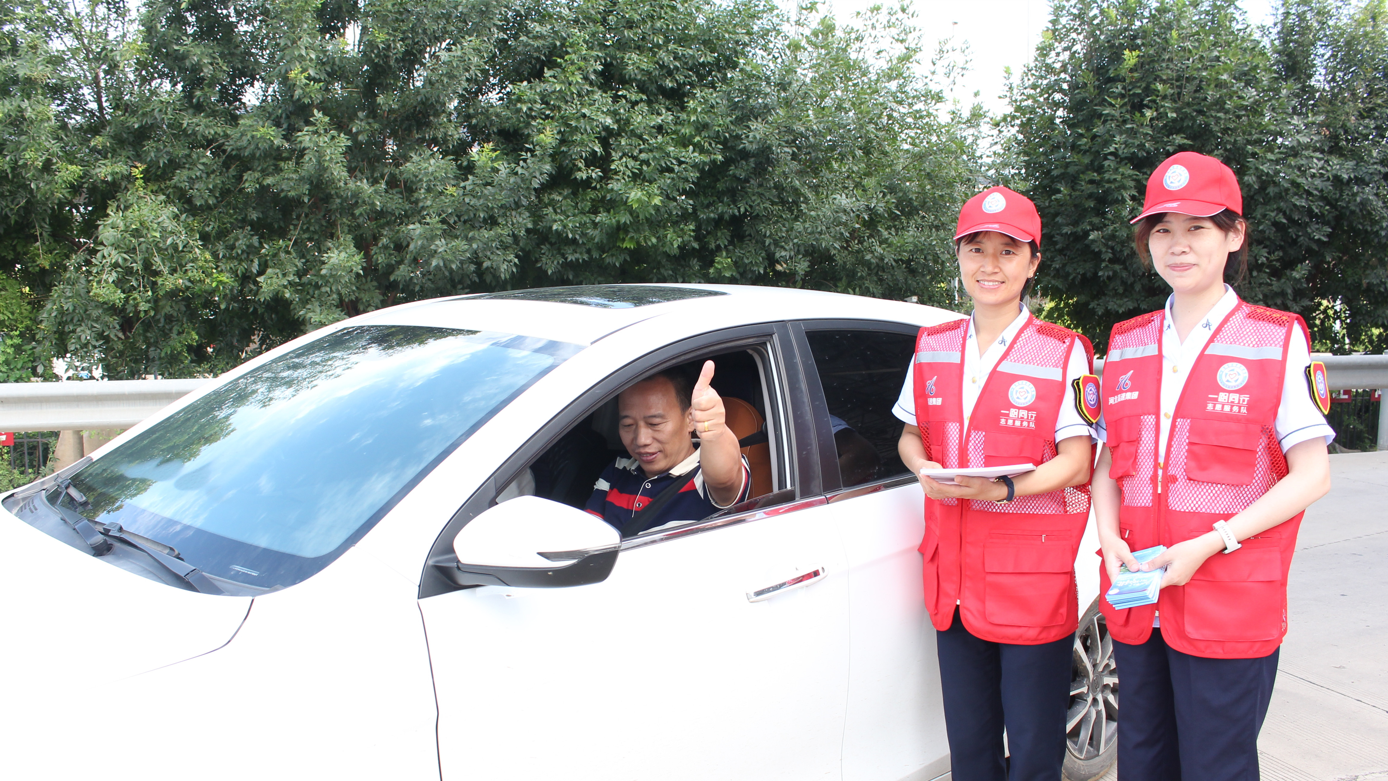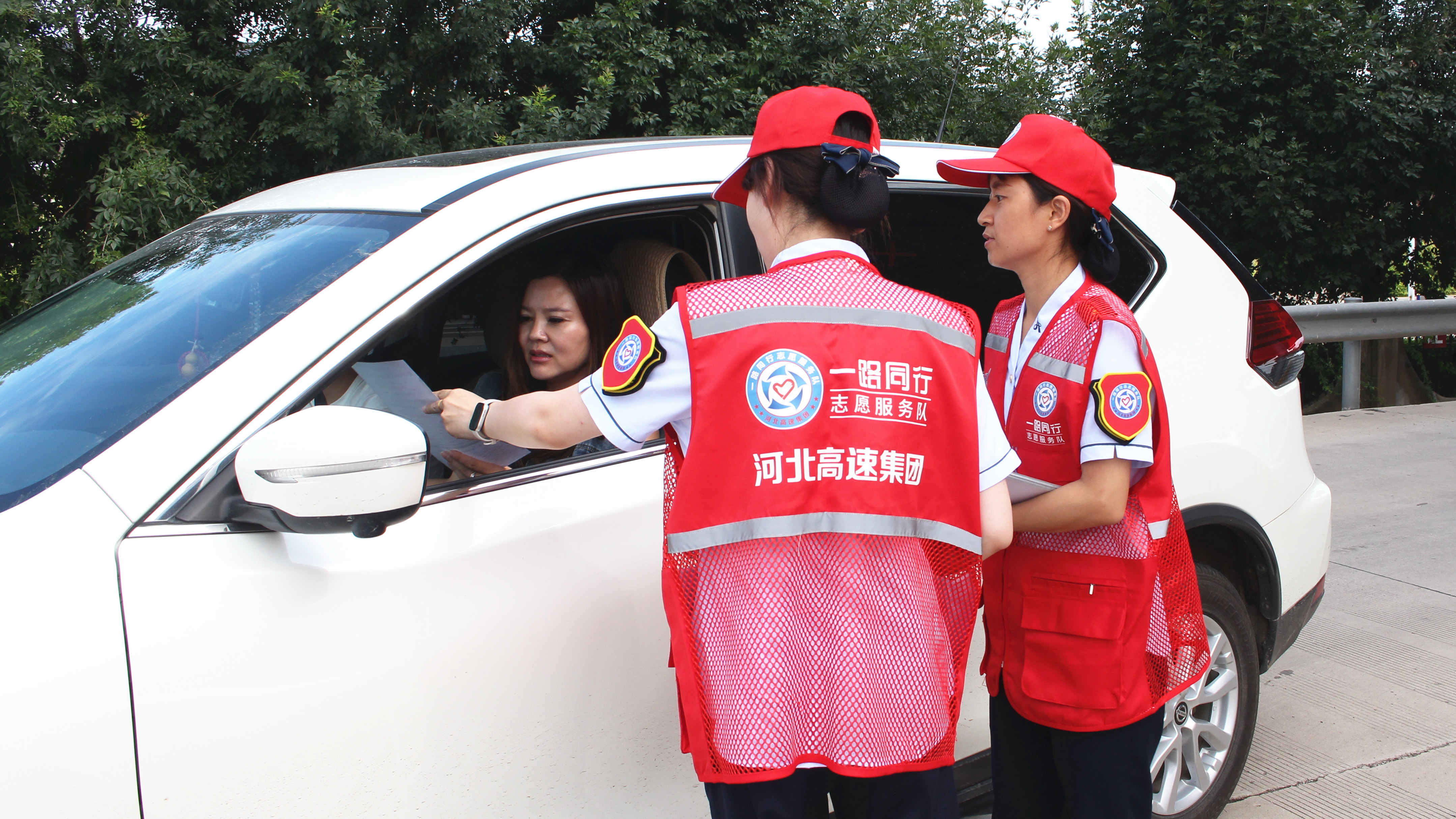 志愿服务小队成员积极为过往司乘发放宣传单页,介绍附近景区及游览线路,让司乘更直观、更清晰地掌握周边文旅信息,并与司乘认真沟通,了解司乘需求,帮助司乘规划合适的出行路线,为司乘节约出行时间和出行成本。同时,耐心解答司乘咨询的关于收费政策、道路通行状况等问题,并做好夏季行车安全提醒,收获过往司乘的“点赞”和好评。