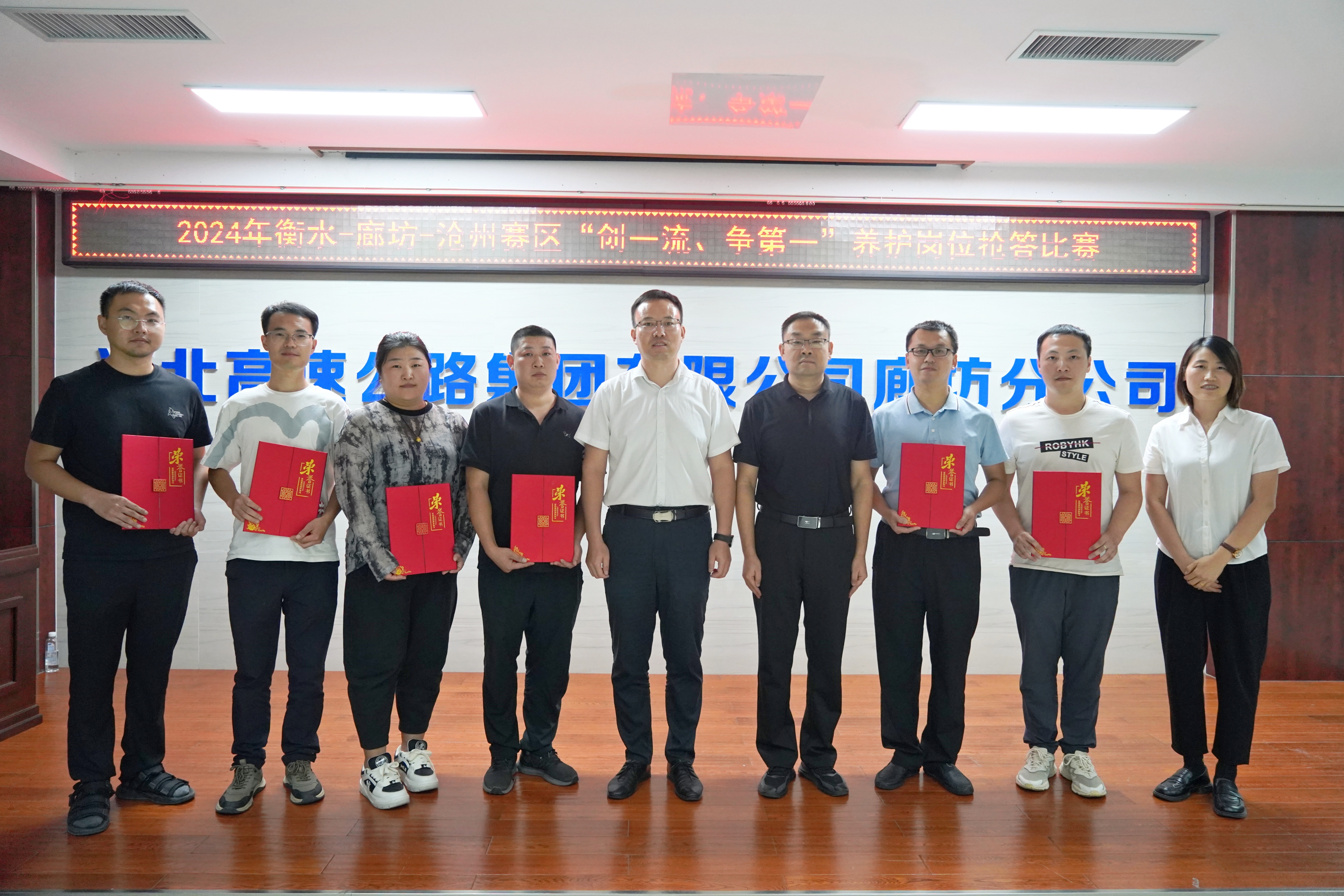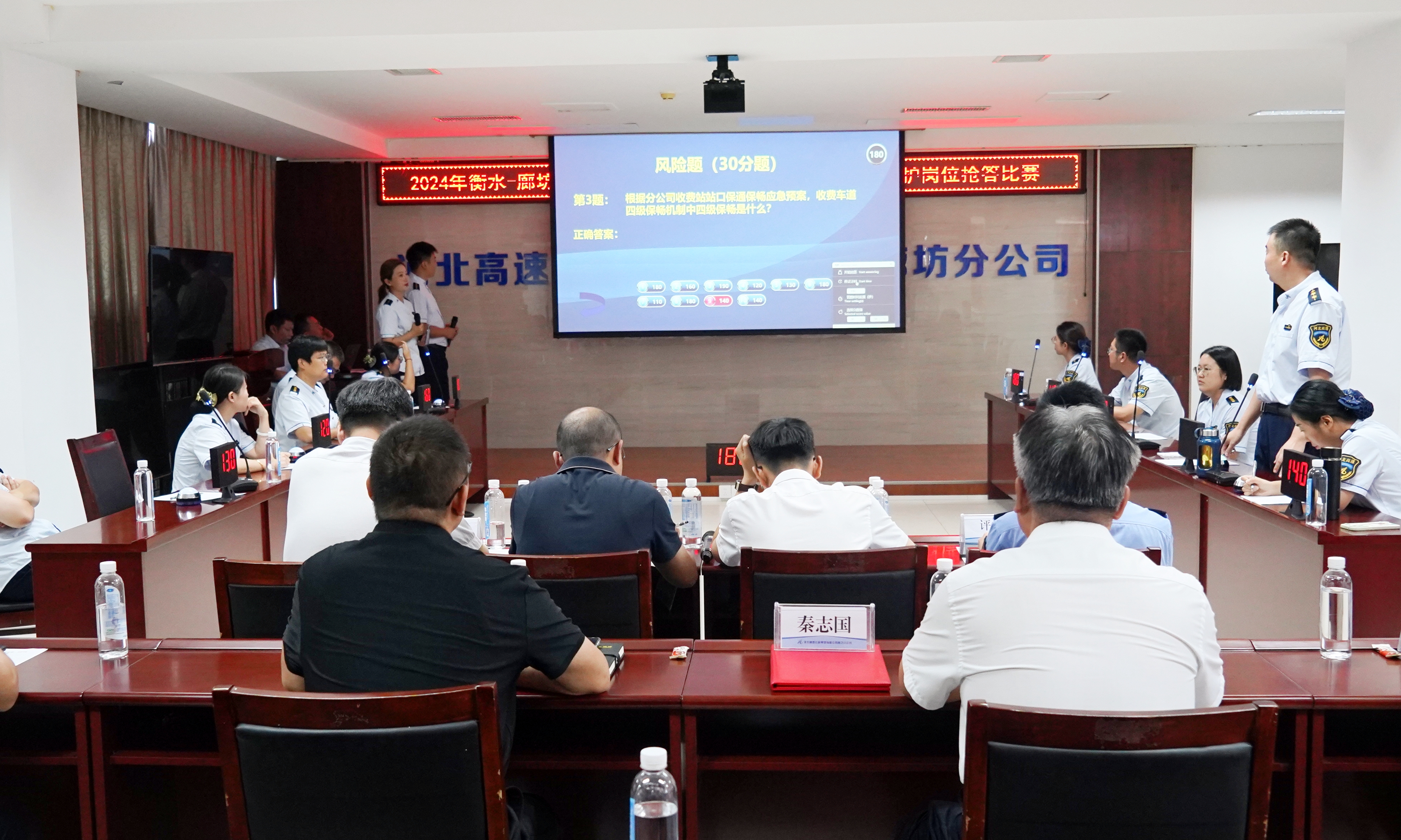 在集团公司2024年“创一流、争第一”劳动竞赛暨首届岗位技能比武活动开展得如火如荼之际,9月19日,衡水-廊坊-沧州赛区收费、养护岗位技能比武活动在廊坊分公司火热进行,来自廊坊公司、大广分公司、京沪分公司、邢衡衡水分公司的20名收费岗位人员和20名养护岗位人员分场次分小组开展抢答竞赛,展开激烈角逐。