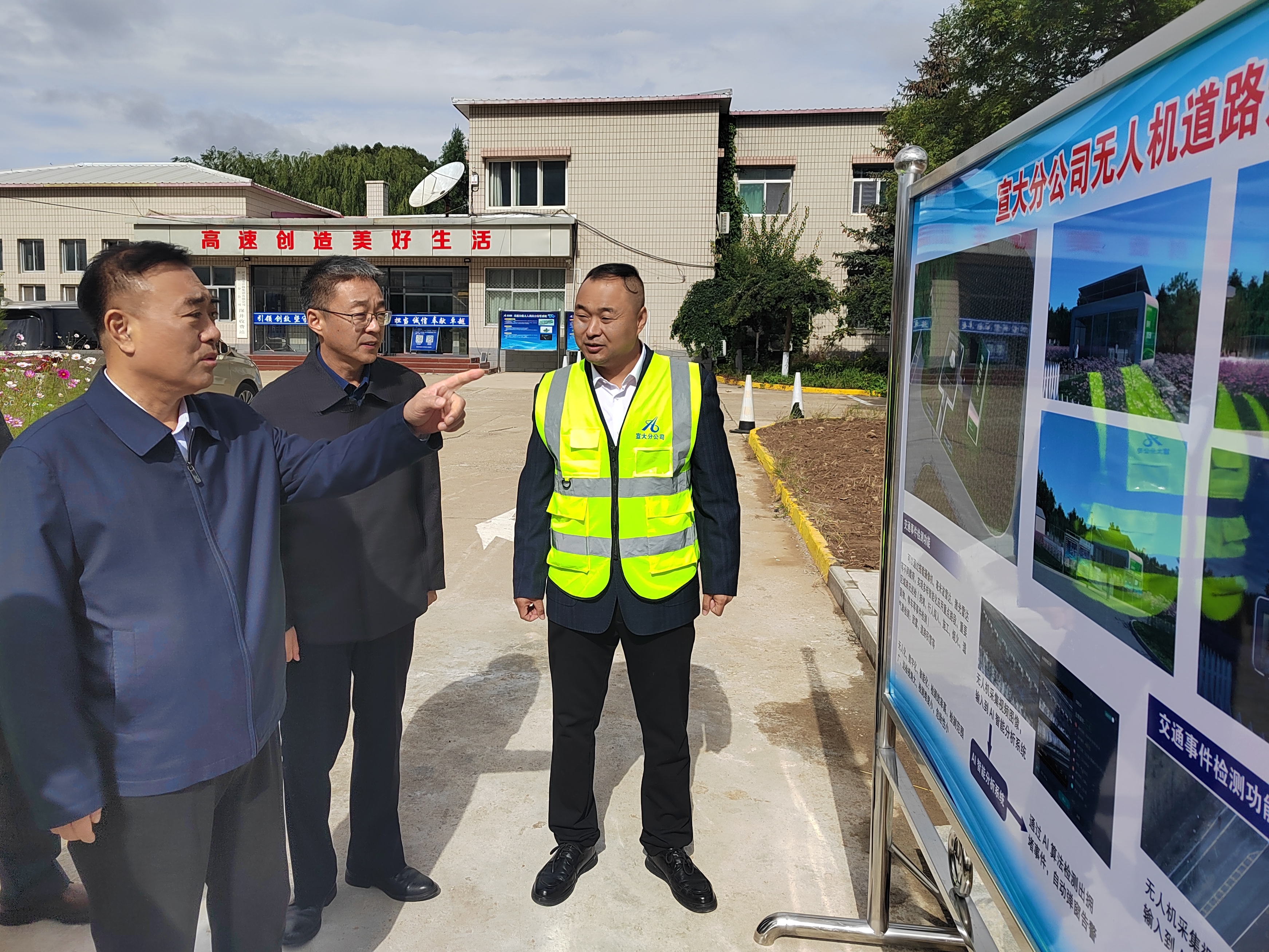 在宣大分公司宣化南收费站,杨荣博查看了收费广场改造提升情况,听取了工程实施、站口通行、超载车辆治理等情况汇报。在深井收费站,杨荣博听取了深井收费站轻量化、集成化试点建设情况汇报,查看了洪海滨创新工作室研发的“车道一体化集成控制机柜”试用情况,还观摩了无人机机巢施工现场。