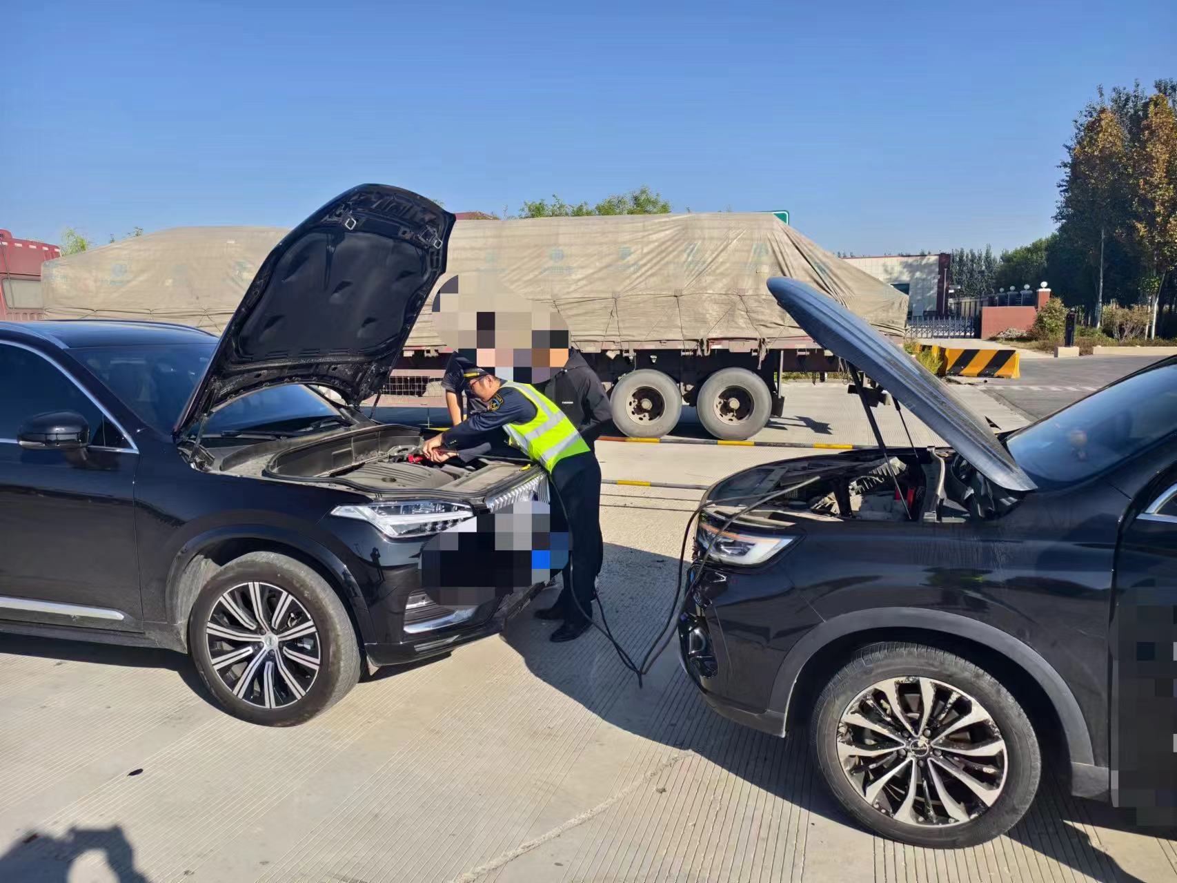 正在治超岗亭值守的工作人员见此情况立即迎上前并上报当班班长。据了解,该车辆故障原因是由于电瓶亏电导致无法启动。为尽快让司机摆脱困境,班长从便民服务台取来搭火线,帮司机的车辆进行了搭电,随后车辆成功启动。摆脱困境后,司机师傅感激的说:“真是太感谢你们了。”班长笑着表示:“不用感谢,这都是九游jiuyou(中国)应该做的”。