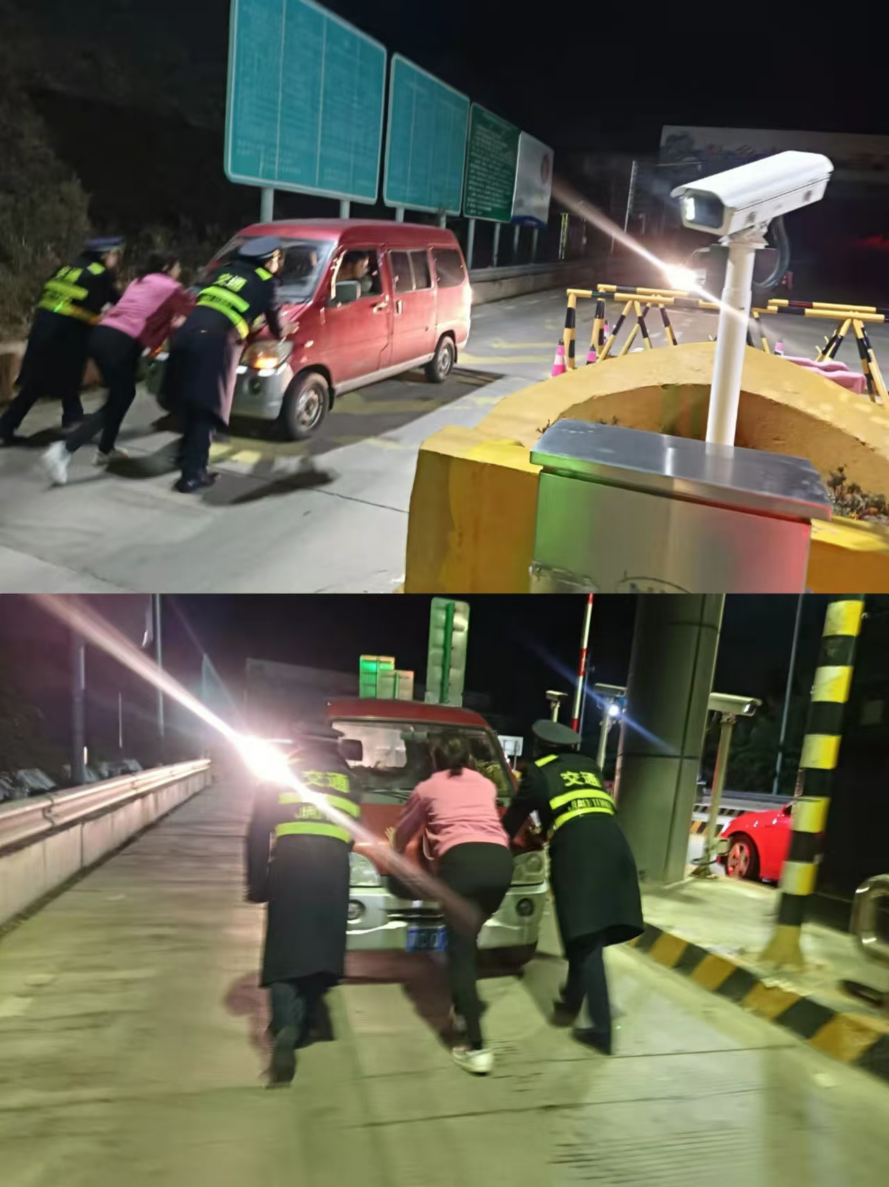 在确保安全的前提下,班长和收费员们合力将故障车辆推出车道,转移到安全位置。在此过程中,他们分工明确,协作默契,展现了员工良好的职业素养和团队精神。经过一番努力,故障车辆被顺利推出,106车道恢复正常通行。