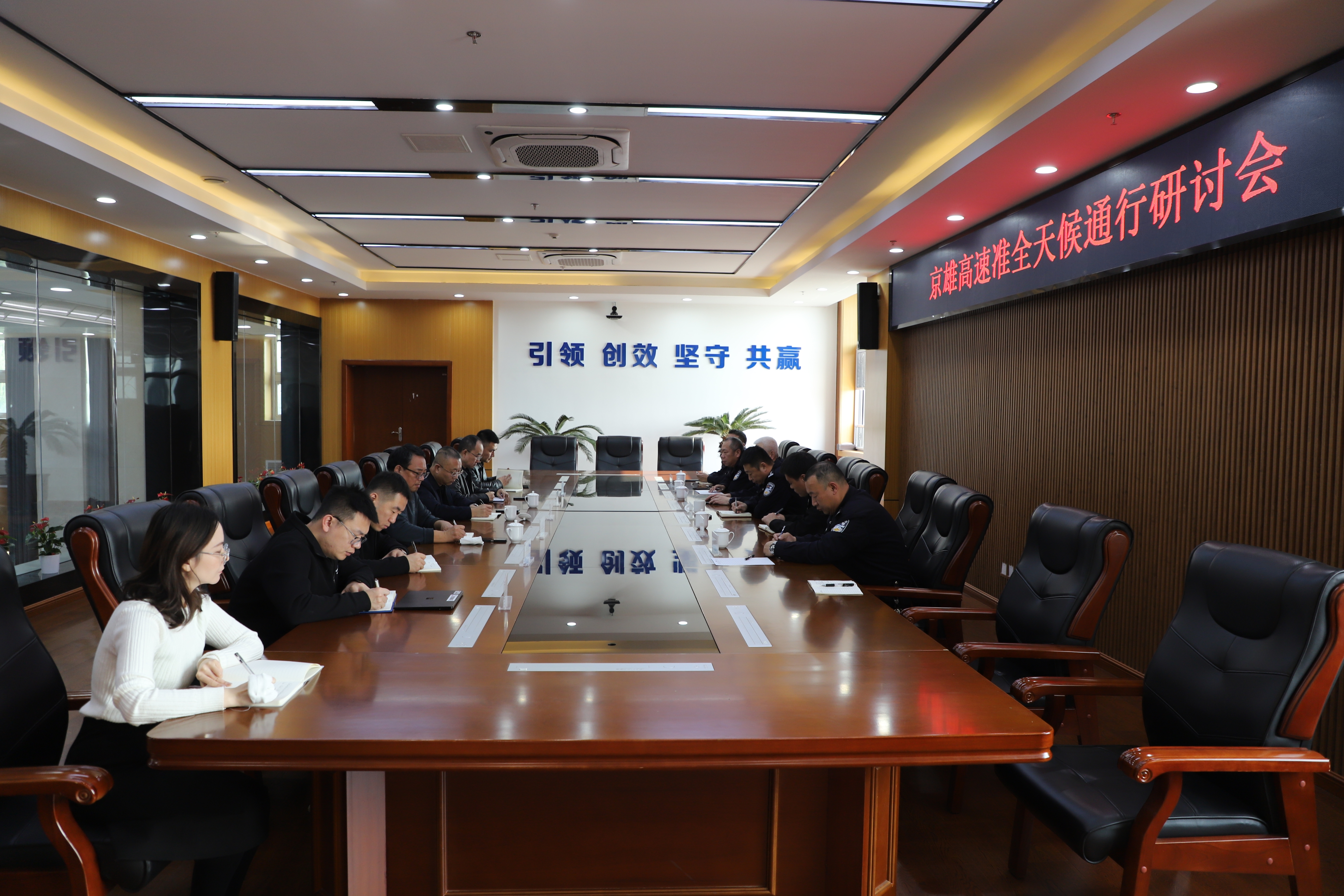 会上,各方围绕打造京雄智慧高速“准全天候通行”进行了深入探讨。会议指出,一要牢固树立“一条路、一家人、一条心”理念,持续运用视频联巡、路面联查、应急联动、诱导联宣“路警四联”响应机制,路警双方加强站口执勤力度和道路应急管控能力;二要针对雾雪等恶劣天气,做到早发现、早处置、早开通,及时采取“压车带道”方式,最大限度少封路、不封路,全力护航司乘平安出行;三要实现准全天候通行场景应用,探索预约式通行模式;四要应用研发的智能车载一体机OBU设备、车联网技术,与交管部门协作,实现数据共享和动态交通管理;五要通过智慧照明、全线监控、情报板以及车路协同信息发布等基础设施保障司乘高效通行。